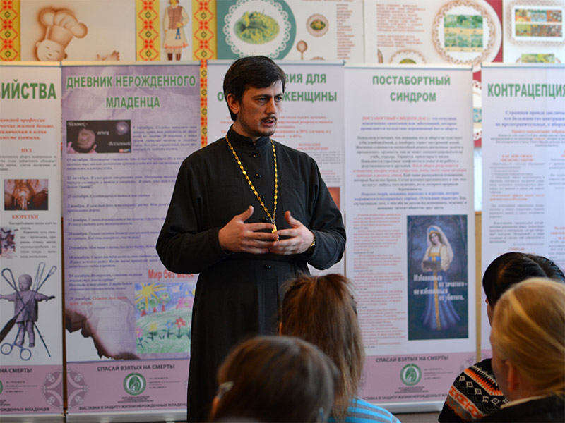 Проблема абортов является не только медицинской, но и нравственной. Поэтому на выставке постоянно принимают участие священники Борисовского благочиния, в частности здесь, в колледже на ней присутствовали благочинный Борисовского церковного округа, настоятель прихода храма Рождества Христова протоиерей Александр Вербило, и настоятель прихода храма святого благоверного князя Дмитрия Донского иерей Сергий Башкиров.