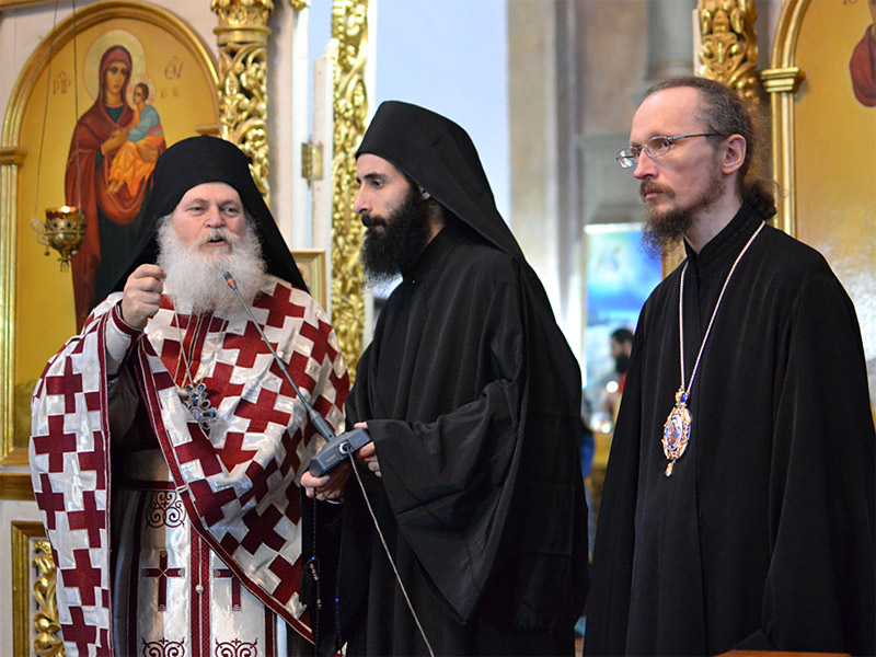 В Свято-Благовещенском храме архимандрит Ефрем возглавил Божественную Литургия, после окончания которой обратился к присутствующим с проповедью.