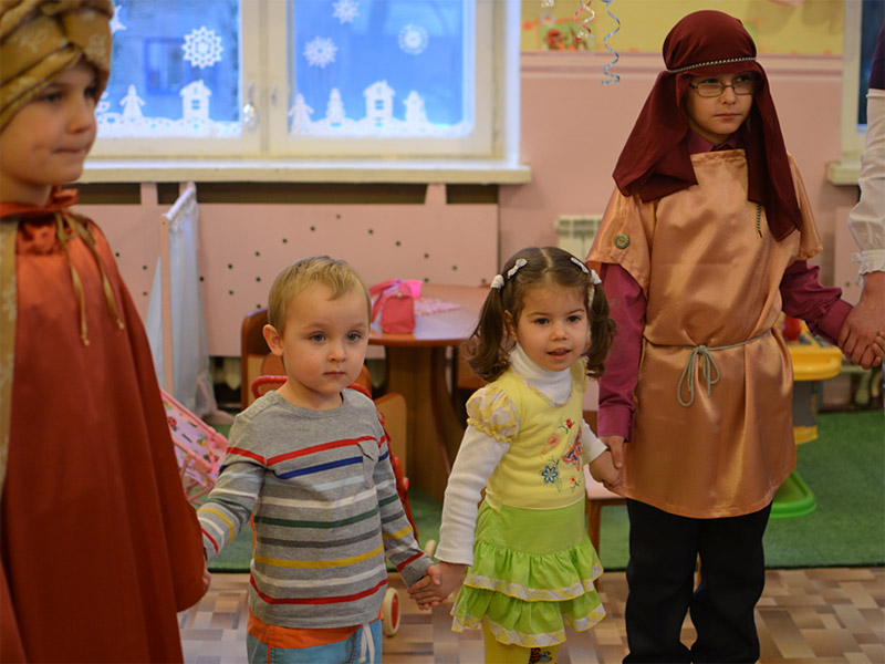 С песнями, хороводами и стихами они прошли по всем группам, каждому воспитаннику учреждения были вручены подарки. Татьяна Леонидовна не просто поздравляла малышей с Рождеством Христовым, но и понятными для них словами рассказывала о празднике, о Христе.