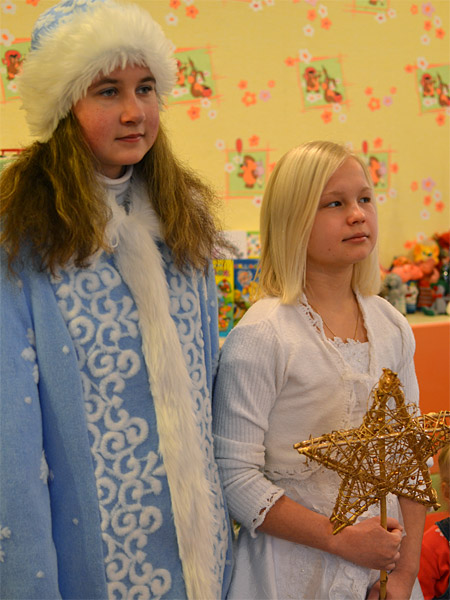 В заключение в музыкальном зале ребята показали небольшое представление на рождественскую тему. Поздравления и подарки были преподнесены и администрации яслей-сада.