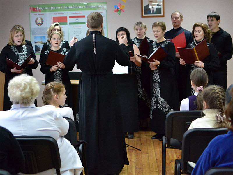 Для пациенток и сотрудников Борисовского родильного дома был организован концерт камерного хора «Преображение» и хора детской Воскресной школы прихода храма Рождества Христова под управлением иерея Сергия Прокопчика.
