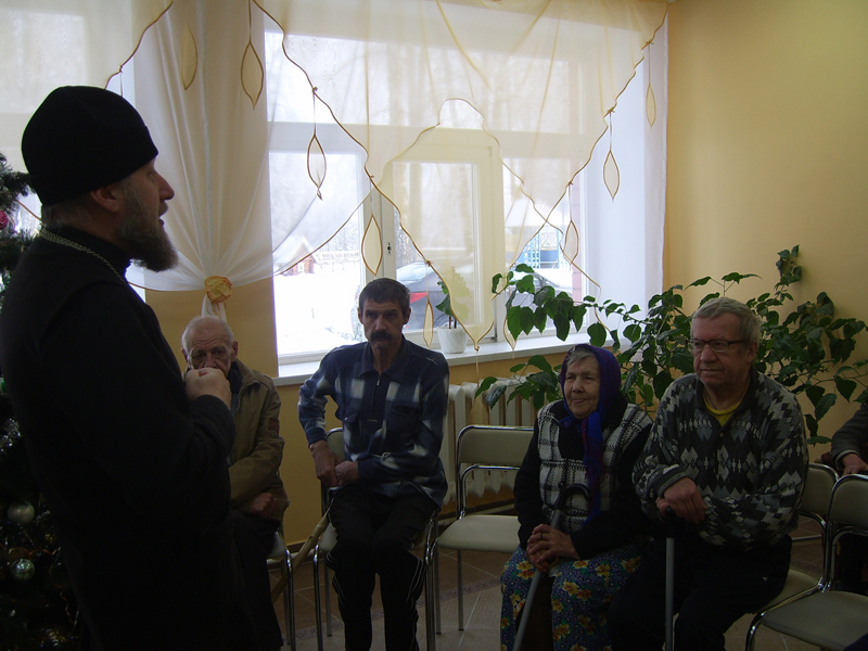 11 января они посетили больницы сестринского ухода в аг. Зембин и в д. Холхолица, а также дом-интернат для инвалидов и престарелых граждан «Юзефово». Отец Александр поздравил всех со светлым, радостным праздником Рождества Христова, а затем вместе с сёстрами милосердия исполнили концертную программу, которую готовили в течении месяца перед Рождеством. Гости пообщались с пожилыми людьми, вручили сладкие подарки, а тех, кто не смог присутствовать на Рождественском концерте поздравили в палатах. Всем учреждениям были переданы моющие средства и средства гигиены. Такие встречи для одиноких людей, как глоток свежего воздуха. Они их ждут, радуются им, чувство одиночества исчезает, когда старики видят заботу и внимание к себе. Некоторые от избытка чувств не смогли сдержать слёз, просили приезжать ещё.