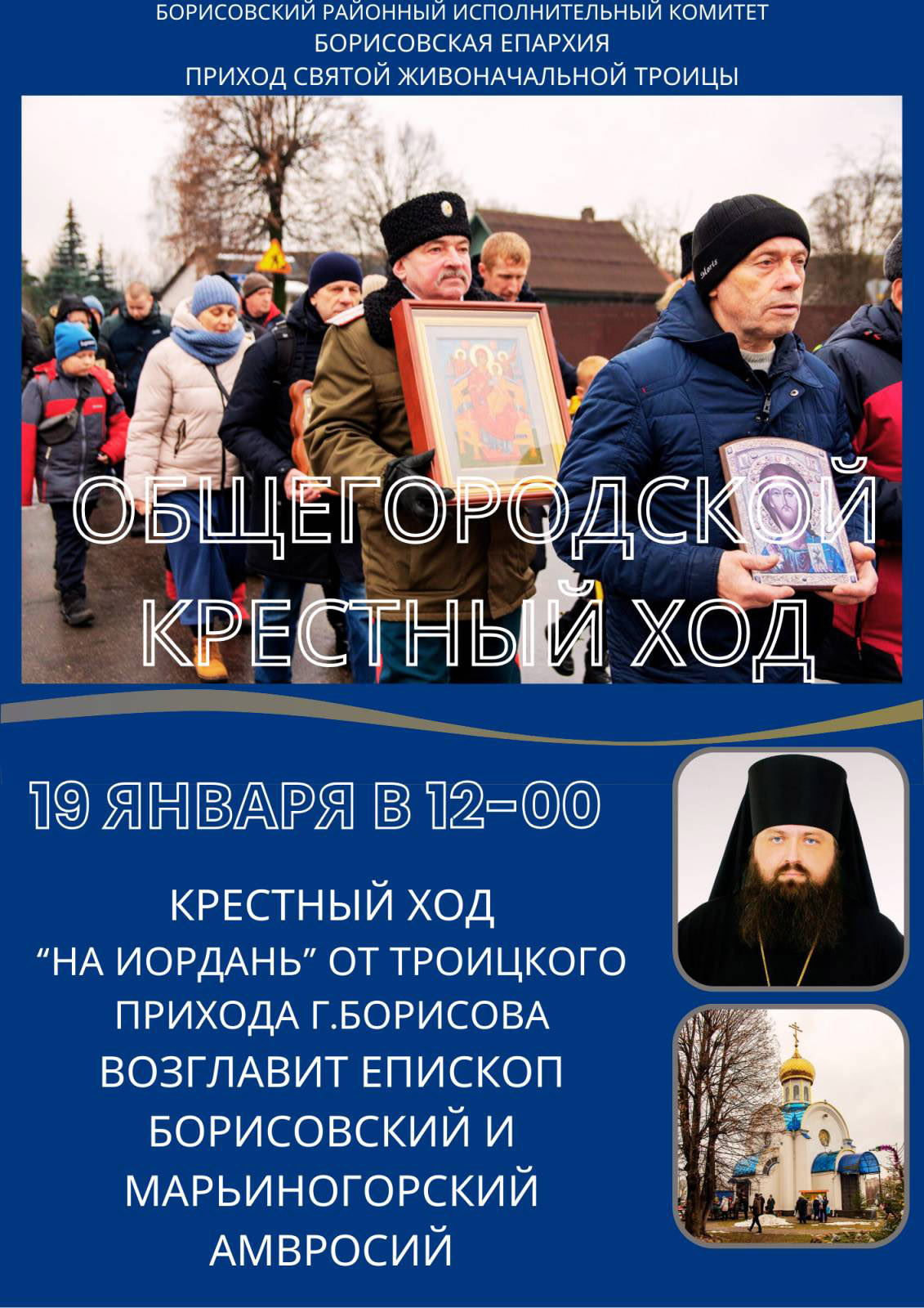19 января в день Святого Богоявления. Крещение Господа Бога и Спаса нашего Иисуса Христа, Преосвященнейший Амвросий, епископ Борисовский и Марьиногорский возглавит общегородской крестный ход на «Иордань».