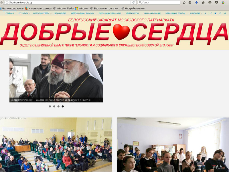 По благословению Преосвященнейшего Вениамина, епископа Борисовского и Марьиногорского начал свою работу официальный сайт Отдела по церковной благотворительности и социальному служению Борисовской епархии. Сайт расскажет о новостях и акциях отдела, об анонсах проводимых мероприятий. На сайте вы найдёте много методического материала, видеосеминаров и практических занятий по социальному служению. Также вы сможете найти много полезной контактной информации о работе Отдела по благочиниям Борисовской епархии — контакты помощников благочинных, сестричеств. Сайт доступен по адресу: www.borisovmiloserdie.by.