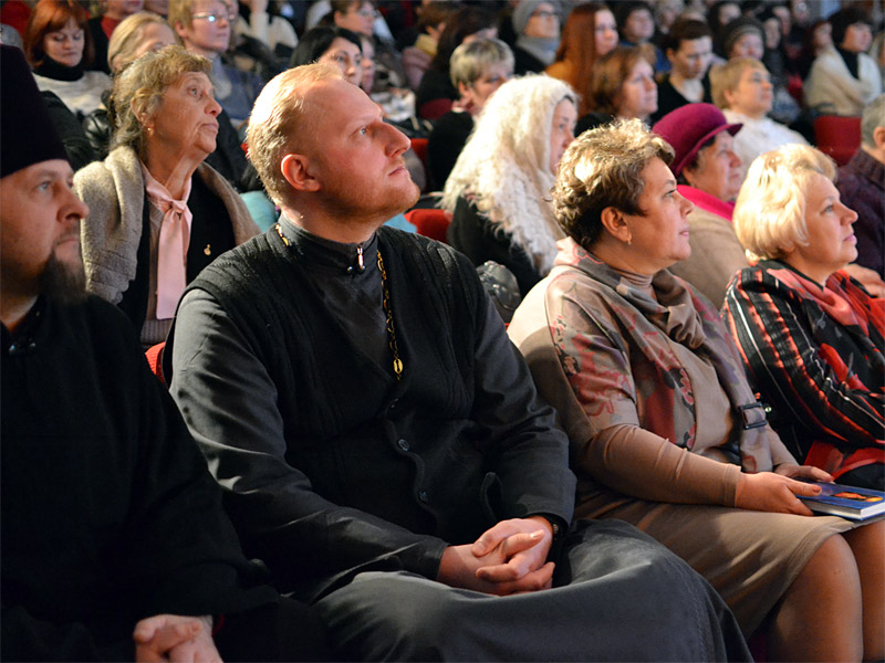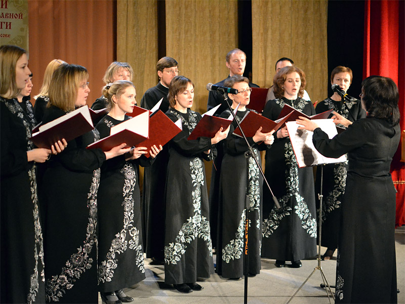Это мероприятие проходит в рамках празднования Дня Православной книги, которое повсеместно по благословению Святейшего Патриарха Московского и всея Руси Кирилла будет отмечаться уже в четвертый раз в Русской Православной Церкви. В нынешнем году он приурочен к юбилейной дате 1150 — летию создания святыми Кириллом и Мефодием славянской азбуки. Благодаря их подвижнической деятельности, на Русь пришла не только письменность, но и Священное Писание, богослужебная литература. И открыл мероприятие камерный хор «Преображение», исполнивший гимн, прославляющий великий подвиг святых равноапостольных братьев — просветителей славян.