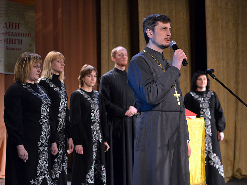 Выступивший затем благочинный Борисовского церковного округа, настоятель прихода храма Рождества Христова протоиерей Александр Вербило отметил, что День православной книги — это не сугубо внутренний праздник Церкви — это всенародный праздник, так как он обращен к людям, он празднуется в России, Беларуси, Украине, на всей исторической Руси. И празднуется не один день, а, как правило, в течение месяца, проводятся различные мероприятия для того, чтобы познакомить людей с этим кладезем мудрости. Праздник был установлен четыре года назад в честь выхода в свет первой печатной книги, созданной диаконом Иоанном Федоровым и Петром Мстиславцем — «Апостол». Это была первая православная книга, сейчас же книги богослужебные, на различную тематику православной направленности выпускаются в большом количестве. И цель нынешнего праздника довести православную книгу до читателя, вызвать интерес к ней, показать ее огромное значение для духовного развития человека.