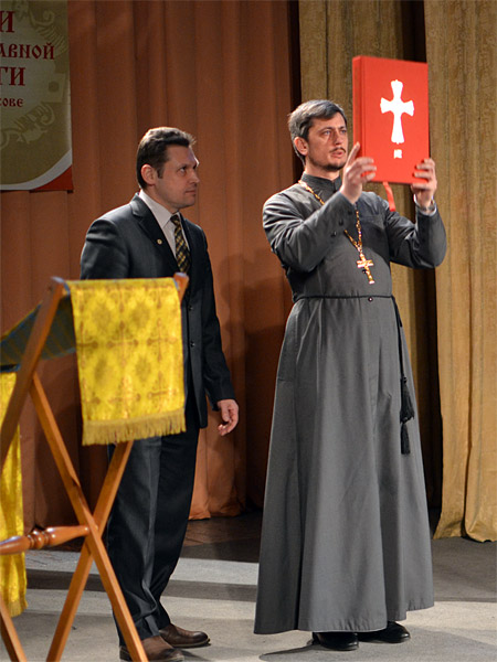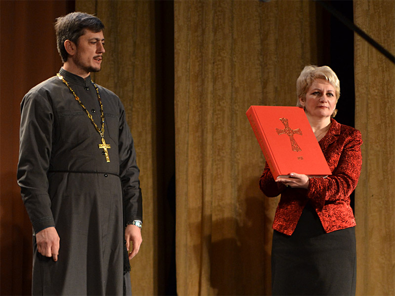 В заключение протоиерей Александр Вербило вручил православные книги для размещения их в духовно-просветительском центре директору библиотеки Г.М. Слесаренко, а также всем, кто оказал помощь и содействие в подготовке и проведении этого мероприятия.