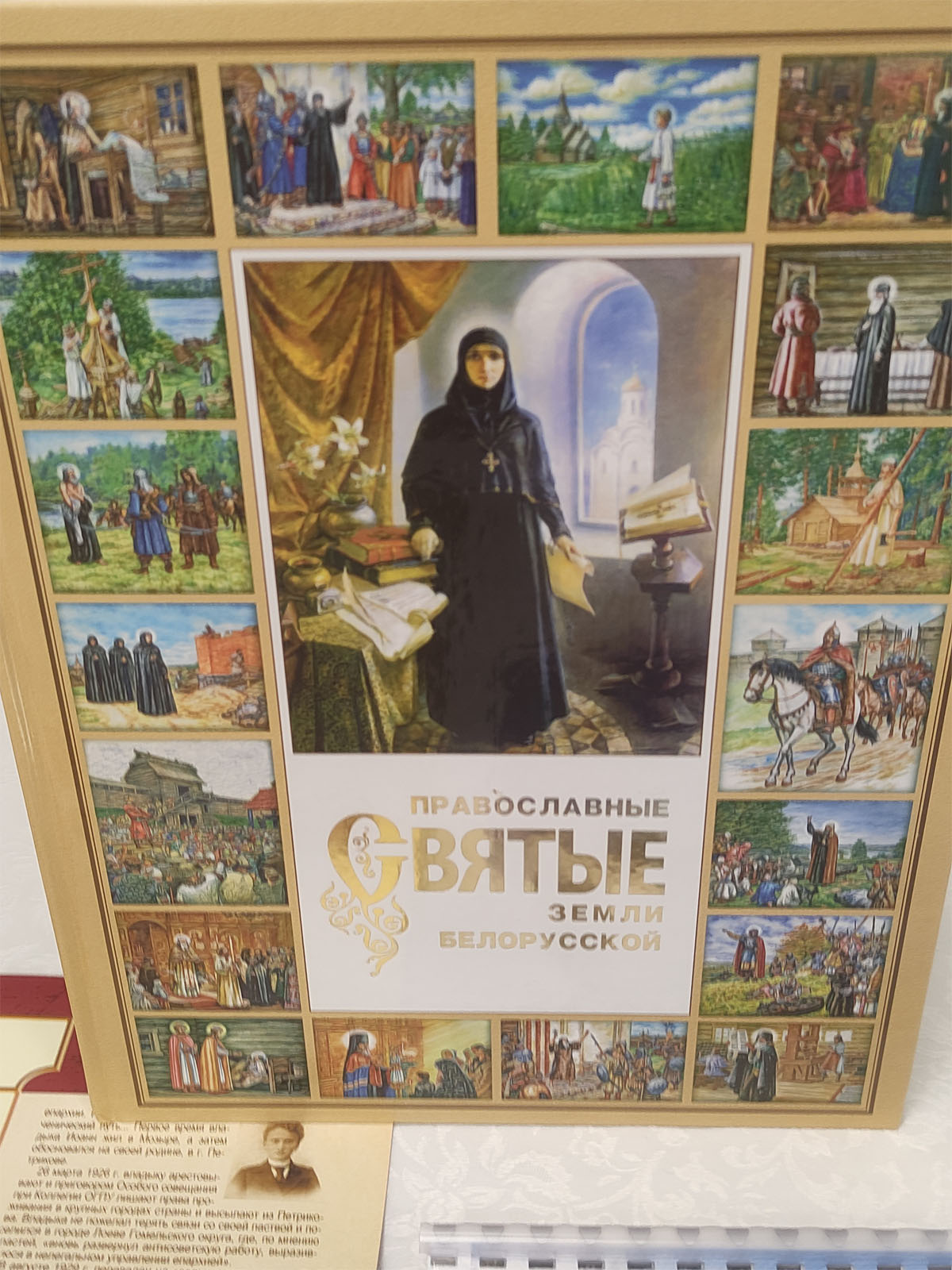 В экспозиции представлены старинные издания Библии, Евангелия, молитвослова, современные православные издания. Размещены выставки списков икон, репродукций картин о Деве Марии, Её Поясе, молитвы к Ней, стихи о Богородице. Презентуются новые книги - «Новомученики и исповедники земли Белорусской» с выставкой списков икон «Новомученики Борисовский епархии» и книга «Митрополит Филарет (Вахромеев). К 90-летию со дня рождения» . На выставке представлена детская православная литература, работы участников иконописного кружка «Лазурит» воскресной школы прихода.