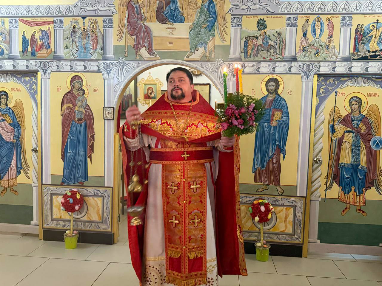 В ночь на 12 апреля , в праздник Светлого Христова Воскресения, настоятель прихода храма святых благоверных князей страстотерпцев Бориса и Глеба иерей Александр Пашкевич и клирик прихода храма протоиерей Федор Чернеков совершили крестный ход, праздничную пасхальную утреню и Божественную литургию святителя Иоанна Златоуста.