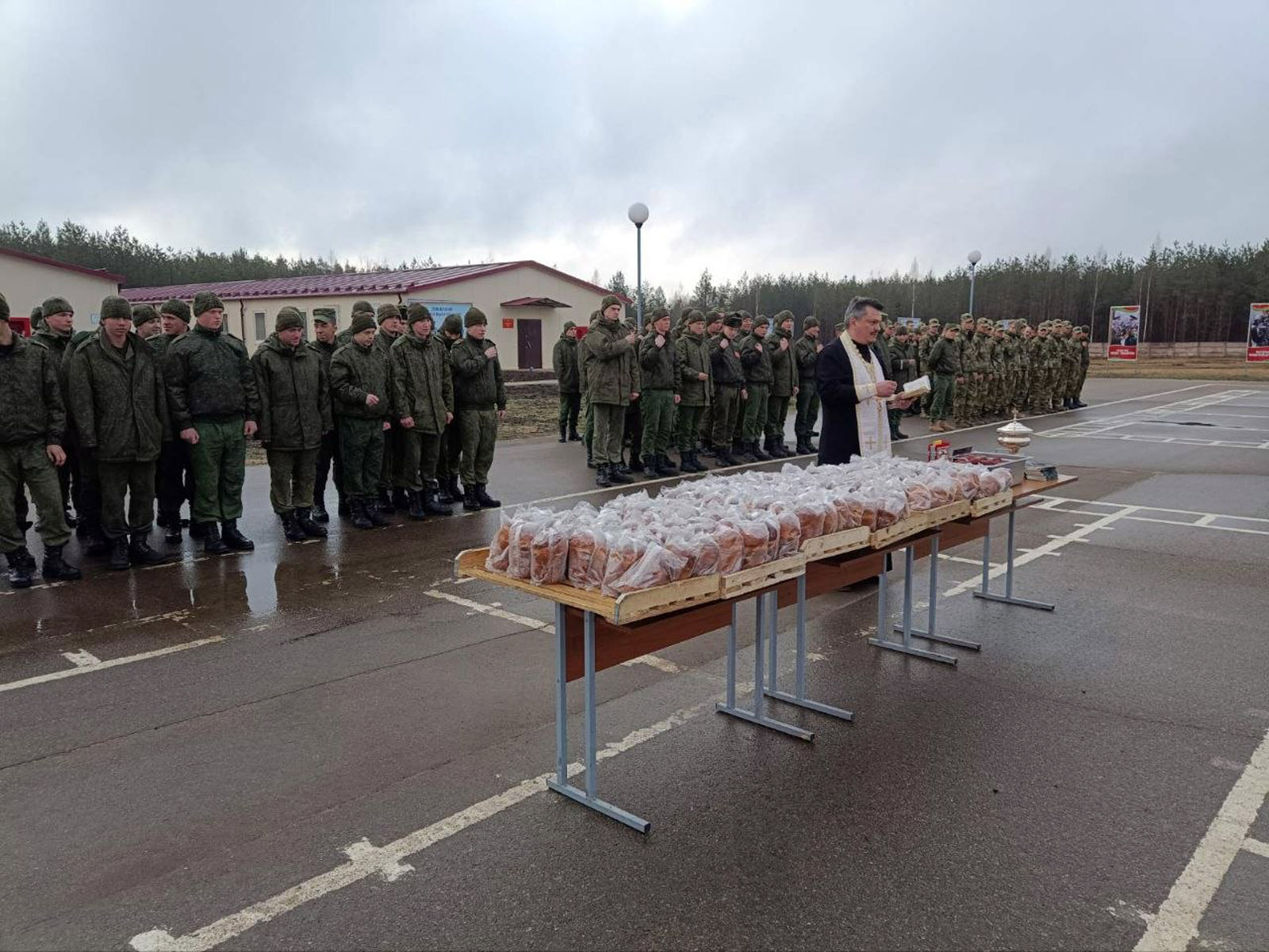Так же 12 апреля иерей Сергий Сасыкбаев совершил молебен и святил Пасхальные куличи и яйца на полигоне Белая лужа. По окончании молитвы священнослужитель обратился с назидательным словом к военнослужащим и курсантам 2 курса Военной академии.