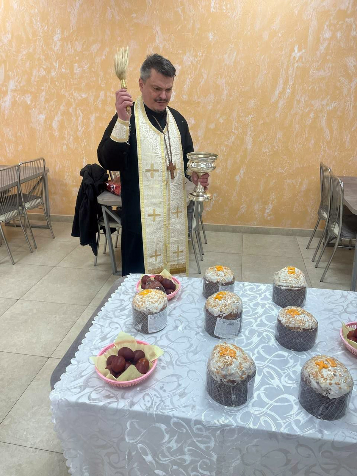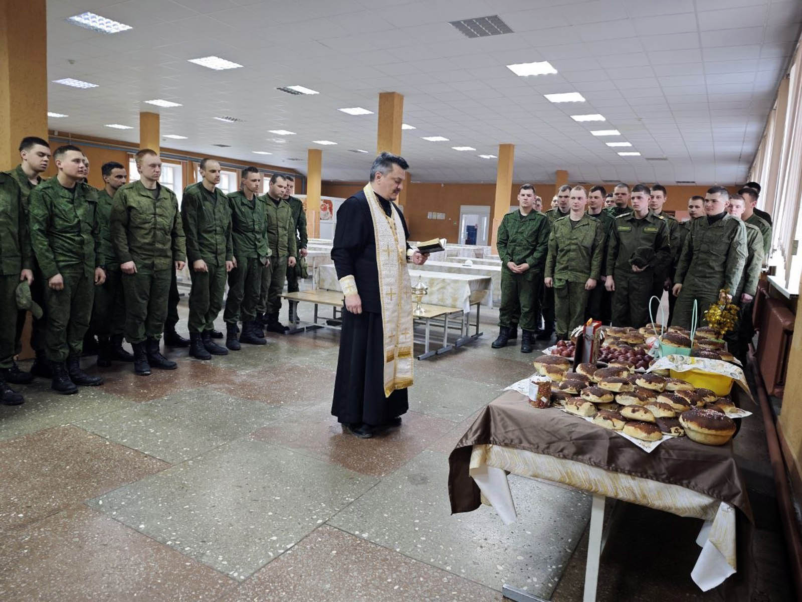 12 апреля иерей Сергий Сасыкбаев совершил молебен и освятил куличи и яйца в Зенитно-ракетном полку №740. По окончании молитвы священнослужитель обратился с Пасхальным словом к присутствующим.