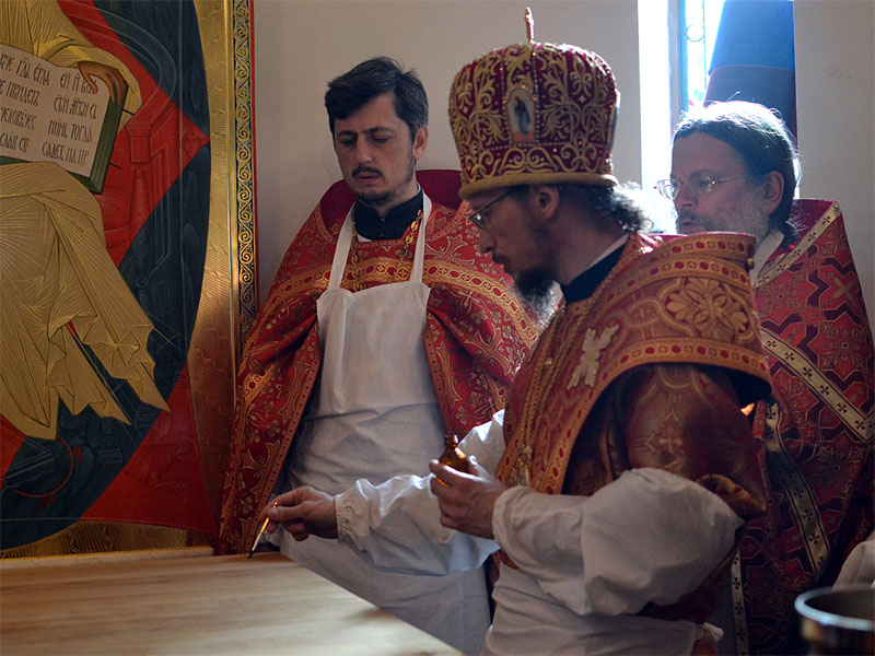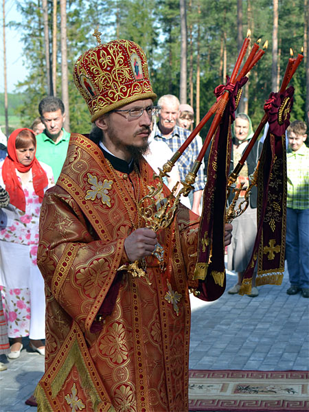 После освящения Преосвященнейший Владыка возглавил Божественную Литургию. Епископу Вениамину сослужили благочинный Борисовского церковного округа, настоятель прихода храма Рождества Христова в г. Борисове протоиерей Александр Вербило, настоятель прихода Покрова Пресвятой Богородицы в г. Минске протоиерей Виктор Беляков, священники Борисовского благочиния.