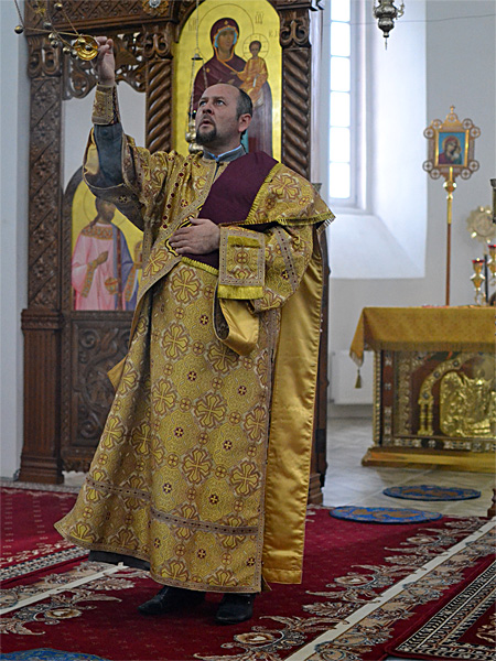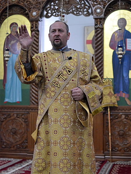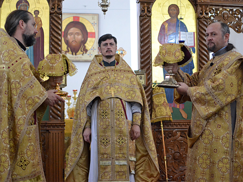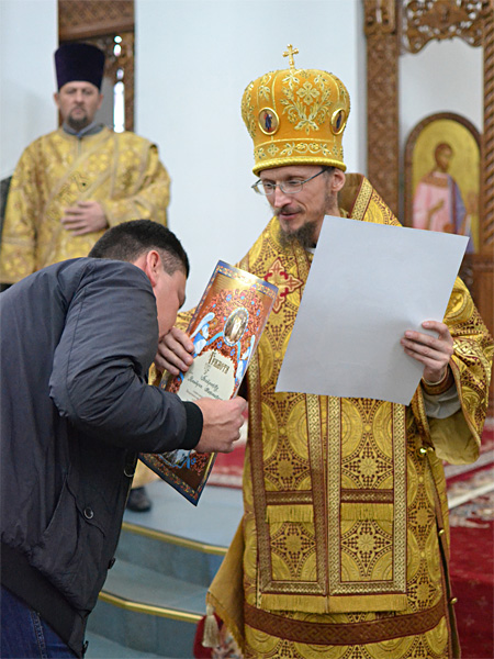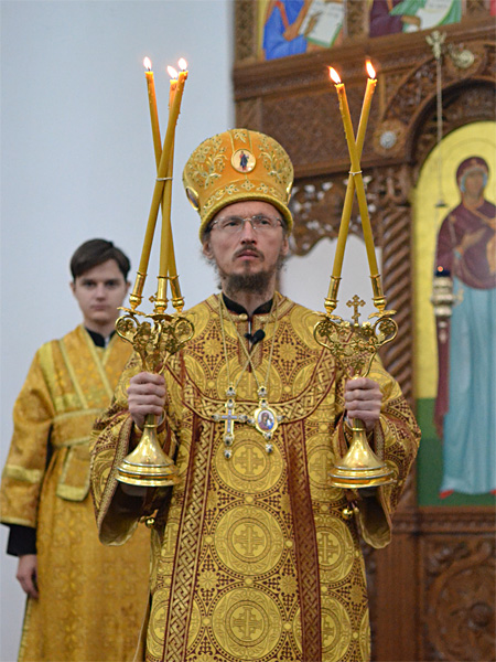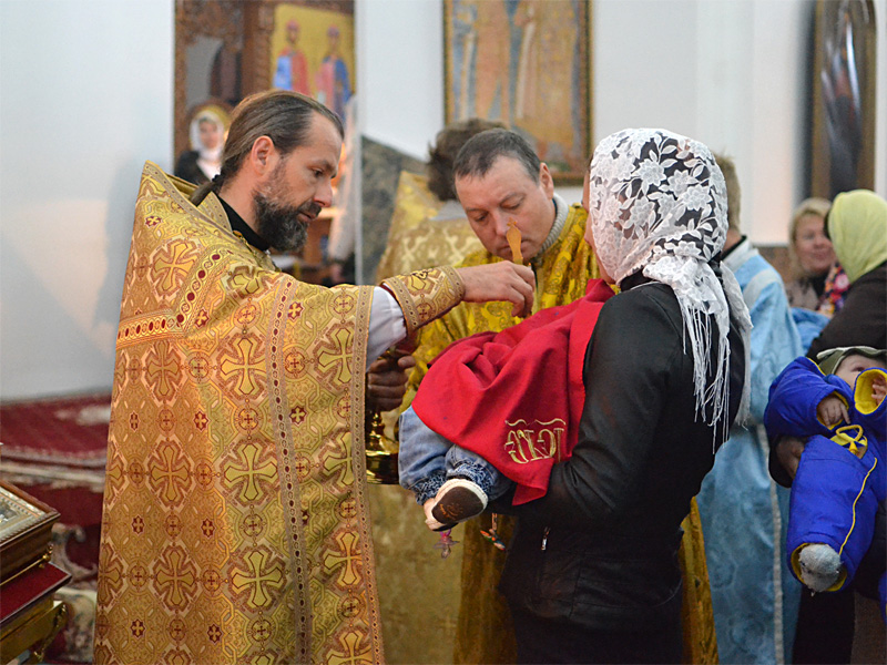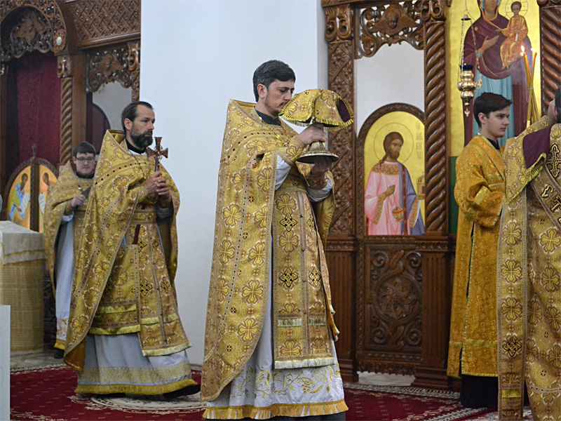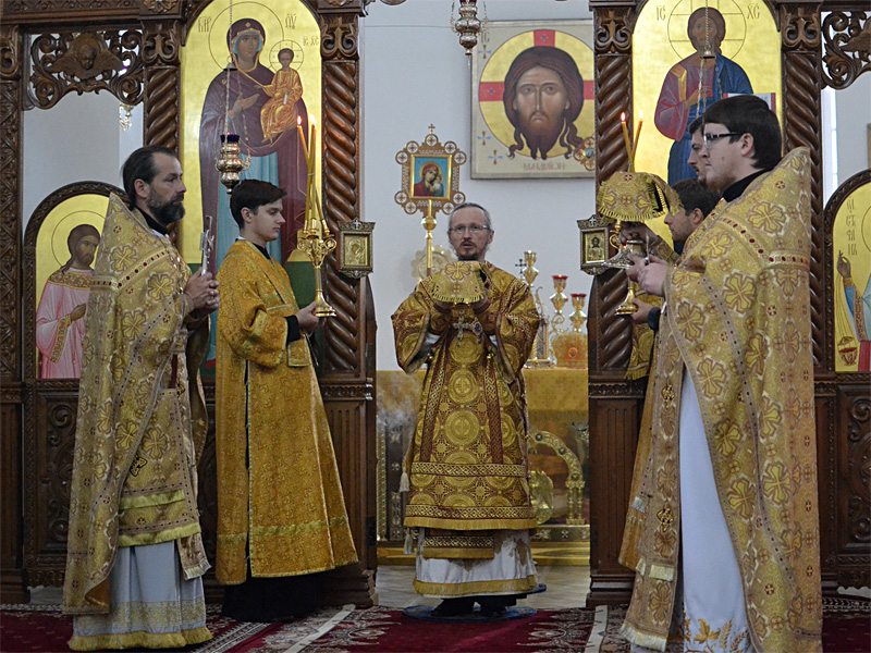 Епископ Вениамин вознес молитву о мире и преодолении междоусобной брани на Украине. Проповедь перед Причастием произнёс иерей Алексей Савко.
