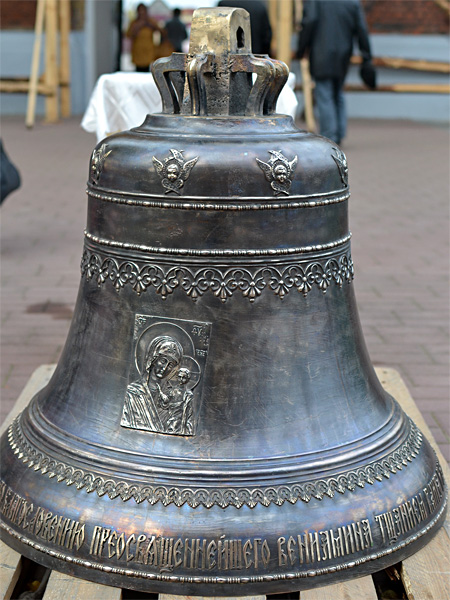 Колокол отлили в городе Тутаеве (Ярославская область, Россия). Он украшен изображениями икон Спасителя и Пресвятой Богородицы, а также памятной надписью в честь 140-летия со дня первого освящения Свято-Воскресенского собора.