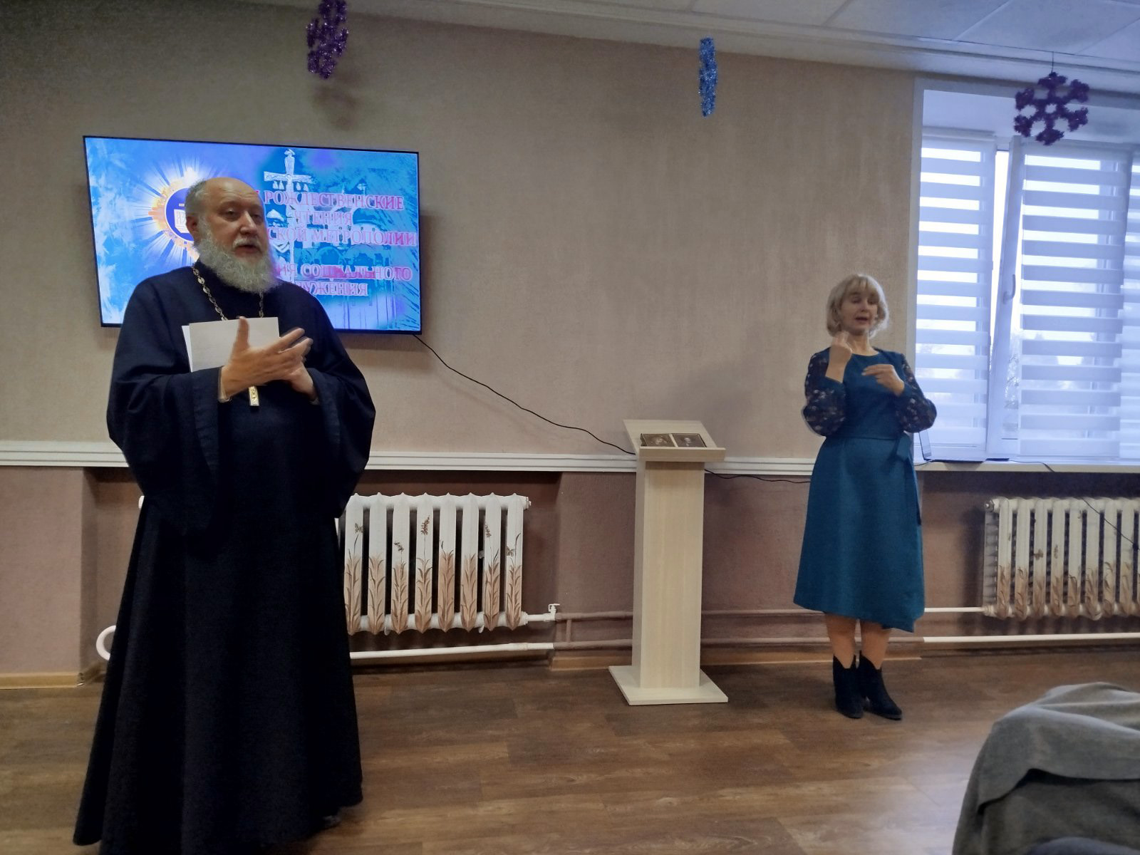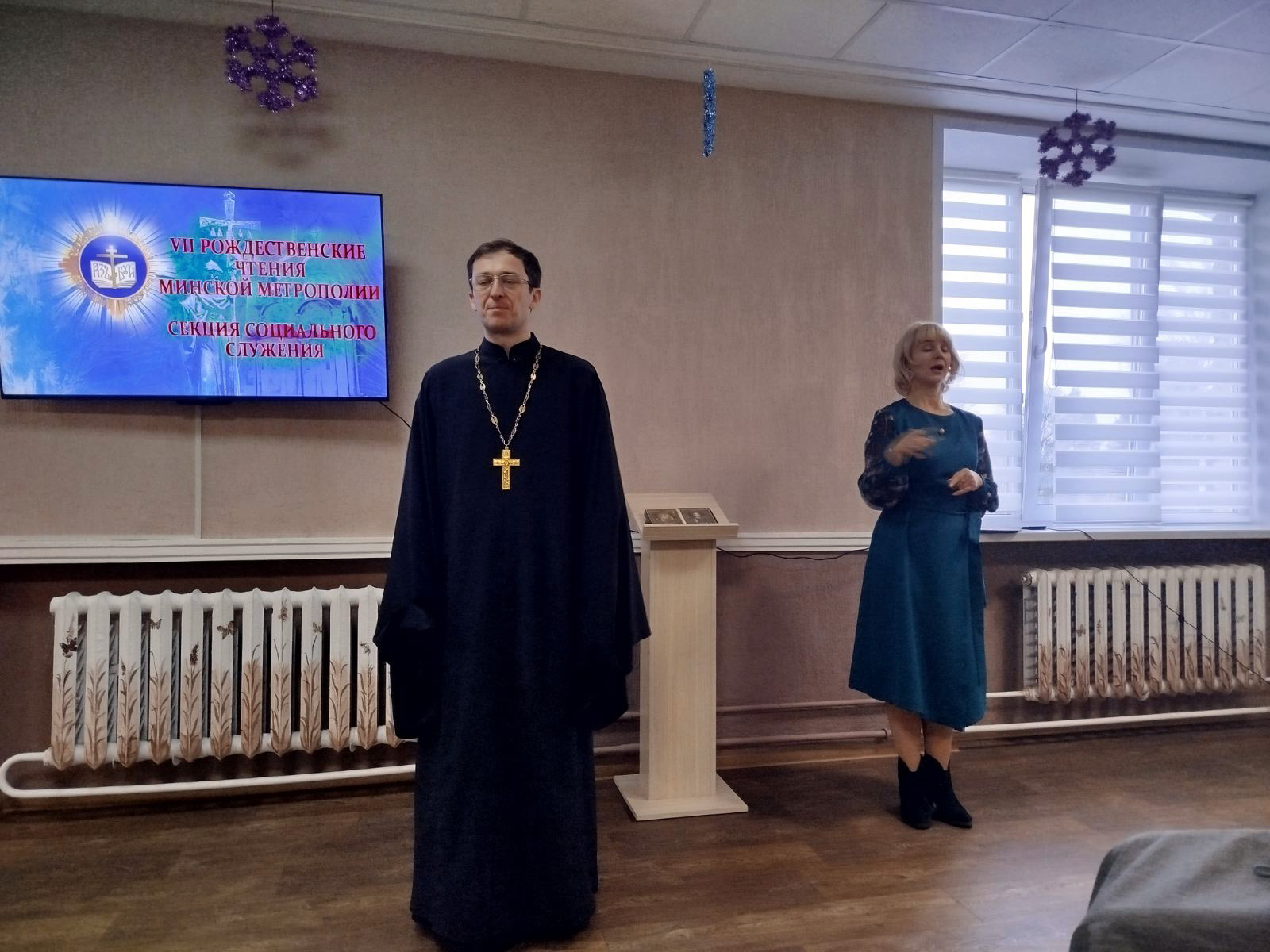 Докладчики: иерей Артемий Прокофьев, клирик Кафедрального собора Воскресения Христова и сурдопереводчик ТЦСОН Борисовского района Петрова Оксана Сергеевна.