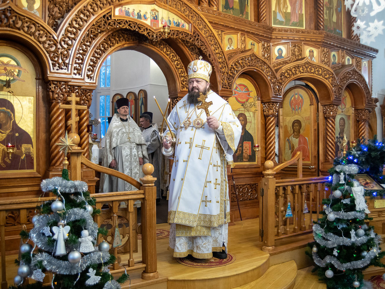 По окончании богослужения епископ Амвросий поздравил всех с Рождеством Христовым и обратился к пастве со словом назидания.