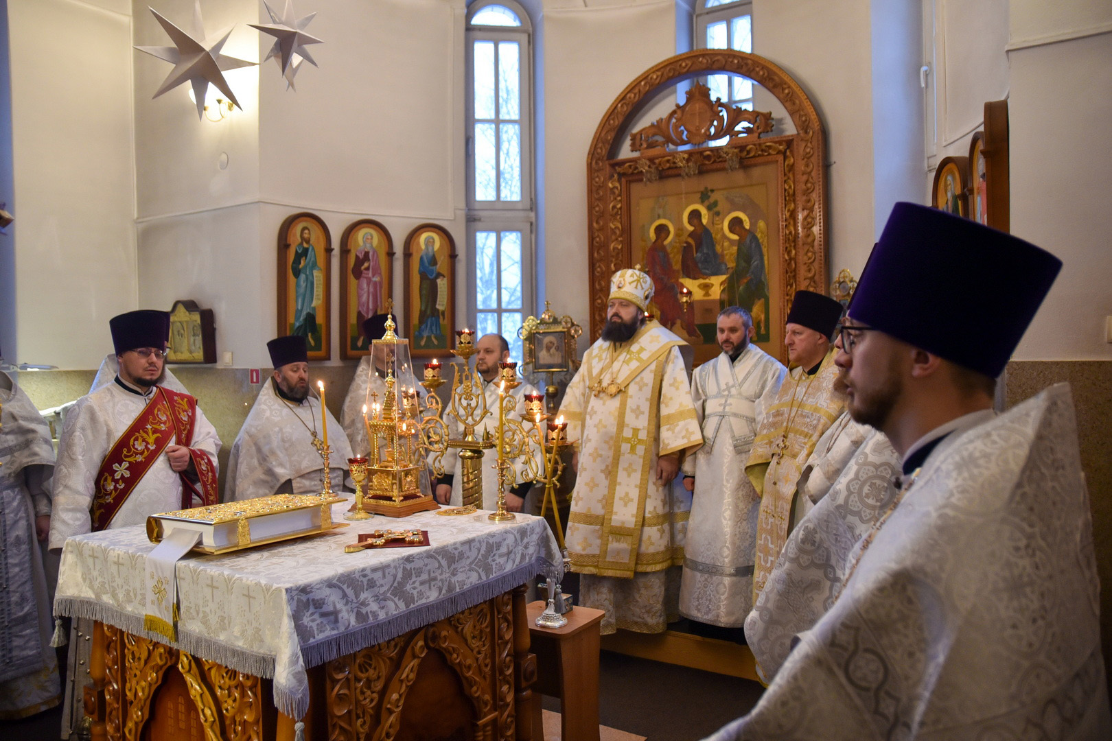 13 января, в день отдания праздника Рождества Господа Бога и Спаса нашего Иисуса Христа, Преосвященный Амвросий, епископ Борисовский и Марьиногорский, совершил Божественную литургию в храме Рождества Христова города Борисова.