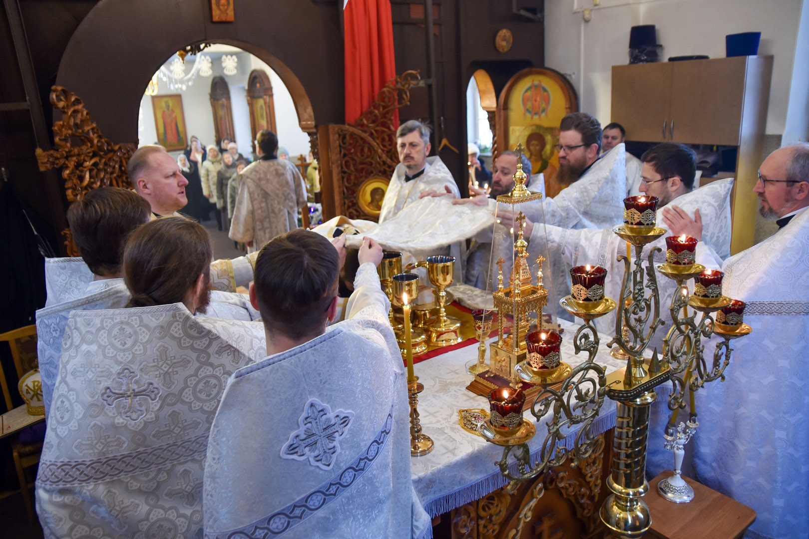 Далее Преосвященный Амвросий обратился к молящимся с назиданием, напомнив о духовном значении великого праздника и призвав всех пребывать в мире, милосердии и усердии к Церкви Христовой. Владыка также поздравил всех, причастившихся Святых Христовых Таин, и преподал собравшимся архипастырское благословение.