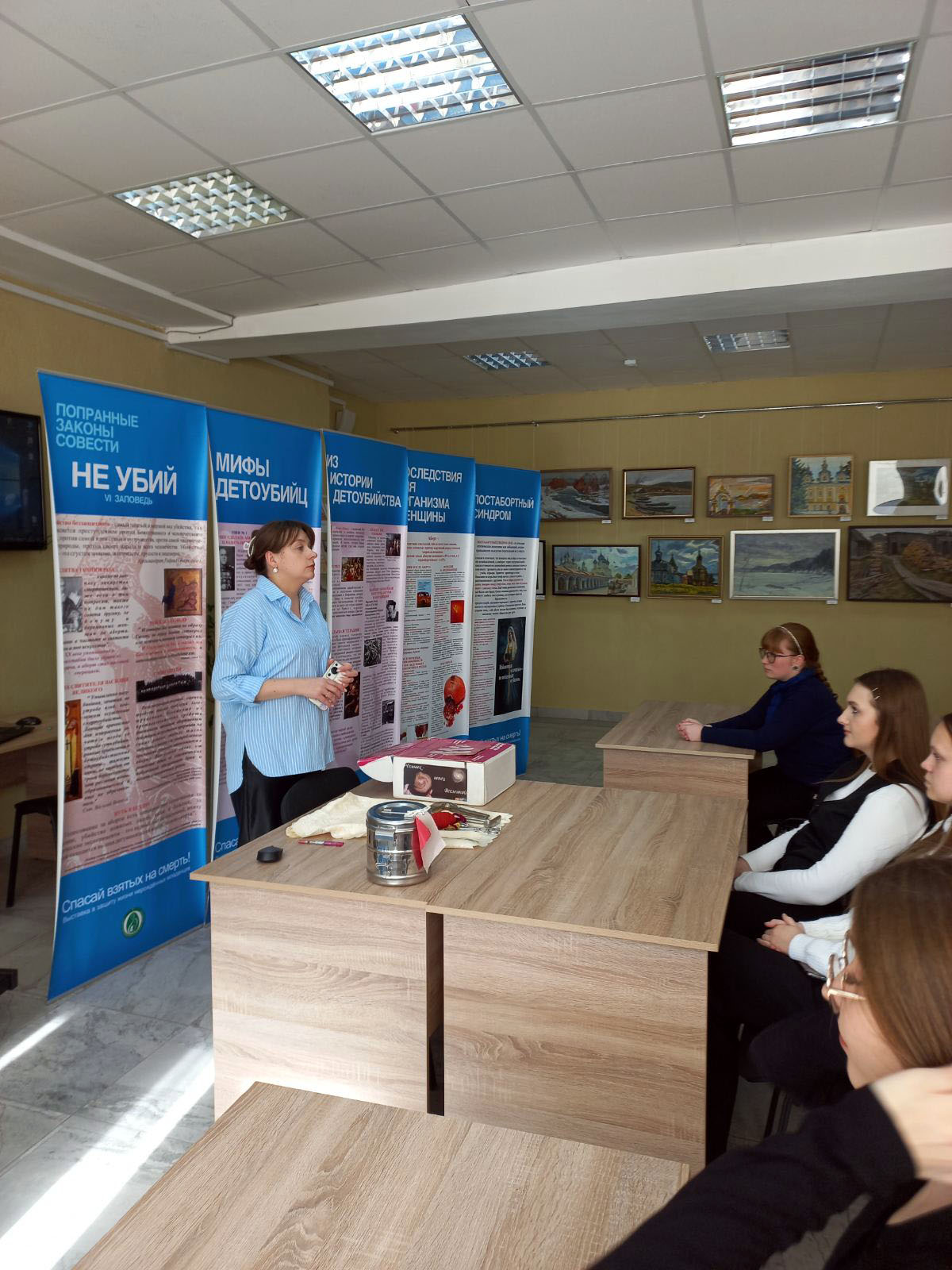 О медицинских и психологических последствиях абортов подробно рассказали Нехайчик Ольга и Поддубская Юлия, учащиеся УО «Борисовский медицинский колледж» и преподаватель колледжа Бабкова Елена Викторовна. Подвела итоги мероприятия библиотекарь отдела духовно-просветительской работы Хацкевич Жанна Александровна.