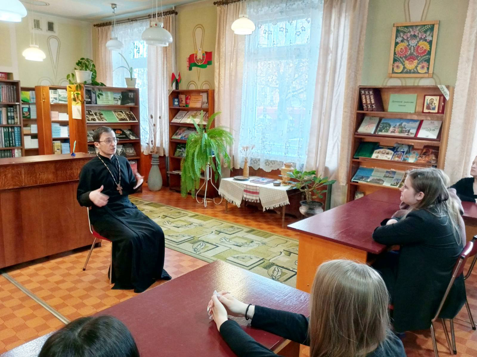 13 марта в рамках мероприятий, приуроченных к Неделе православной книги, клирик храма Рождества Христова г.Борисова, иерей Артемий Щербицкий, посетил библиотеку Борисовского государственного колледжа.