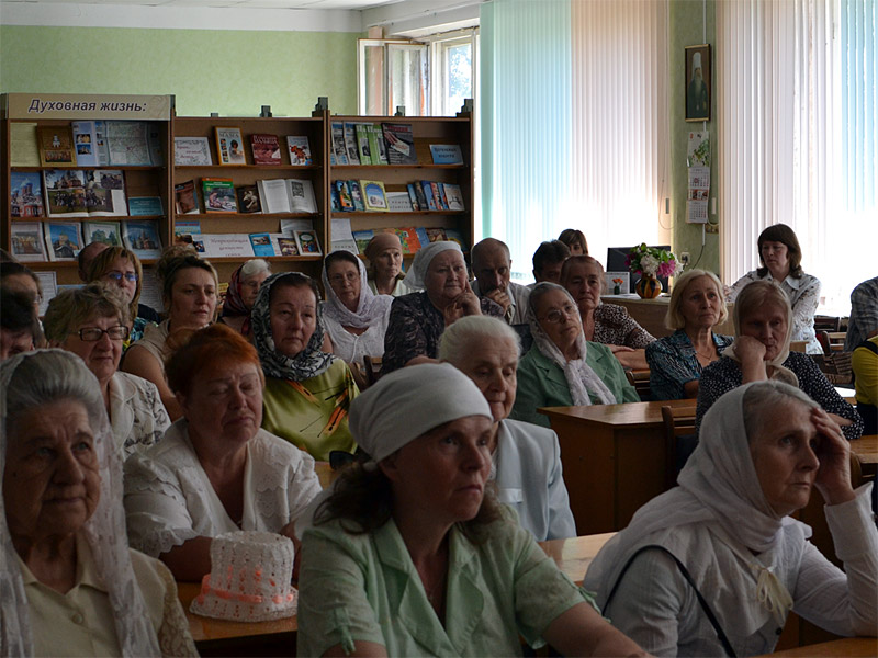 После просмотра фотографий и материалов выставки посетителям в духовно — просветительском центре библиотеки был показан видеофильм о блаженной Валентине Минской.