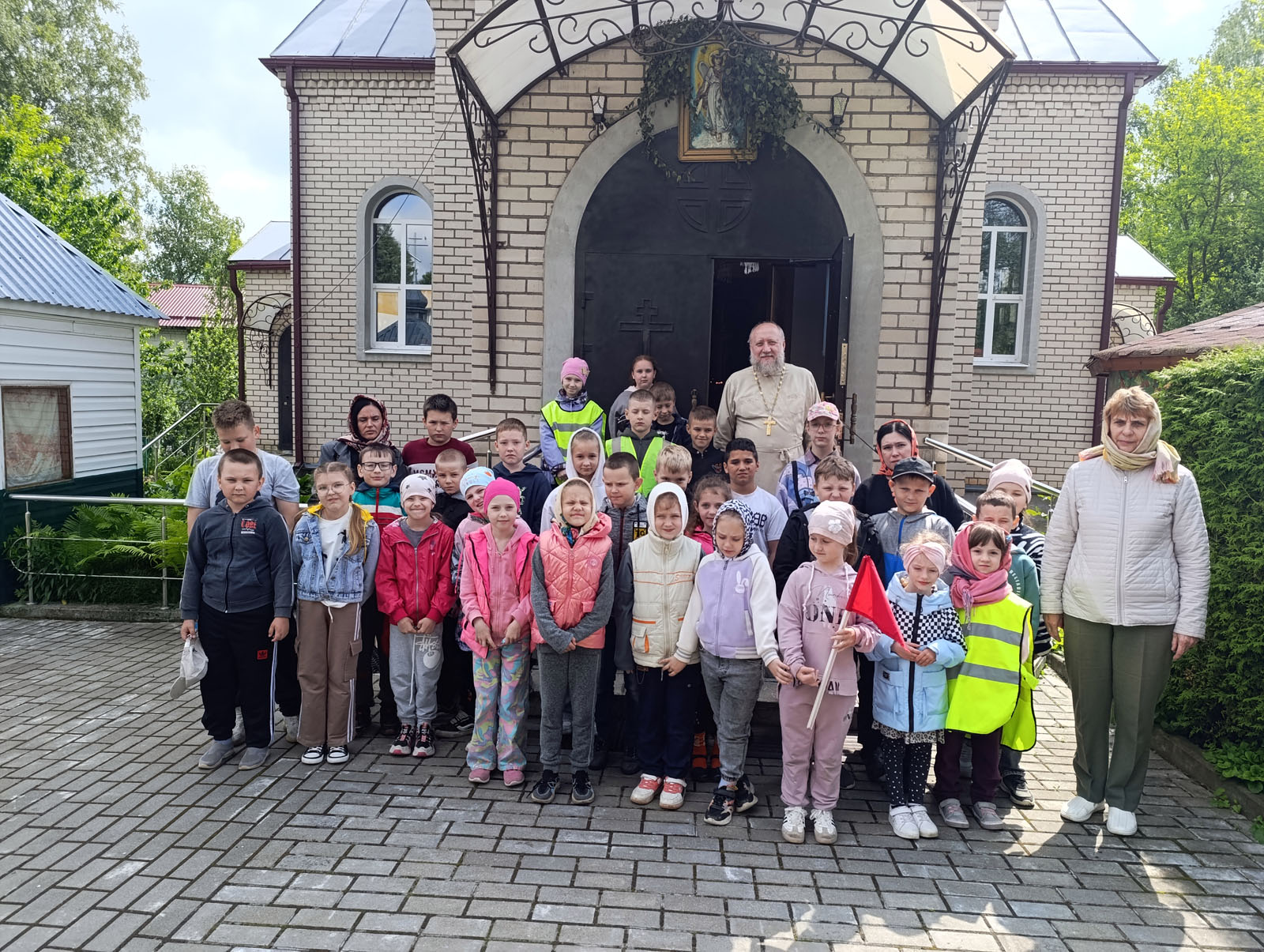 Экскурсию провёл настоятель храма иерей Александр Лукьянович. Он подробно рассказал детям о том, как вести себя в храме, познакомил гостей с внутренним устройством дома Божьего и его святынями. Дети увидели зажжённые свечи и узнали, что каждый огонёк тянется вверх, и горящая свеча перед иконой — как молитва верующих, которая тянется к Богу. Их спросили, о чём просят, о чём молятся люди в храме? Они дали правильные ответы: «Молятся о здоровье, чтобы не было ссор среди людей, чтобы стать лучше, благодарят Бога в своих молитвах, если всё хорошо». После, дети поставили свечи за здравие родных и близких. Также батюшка рассказал, что важно посещать Божественную литургию. Ребята внимательно слушали батюшку и смогли задать интересующие вопросы и получить на них ответы. Гости получили массу впечатлений от посещения храма и узнали много интересного. В конце встречи всех ждало сладкое угощение.