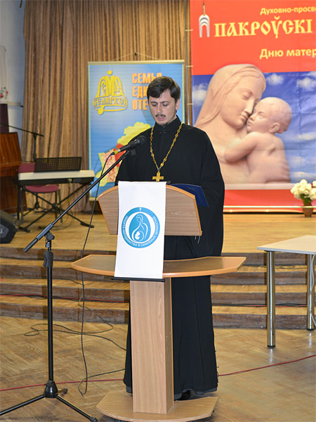 Руководитель направления по защите материнства и семейных ценностей Минской епархии иерей Димитрий Гриценко, являющийся куратором данного мероприятия, выступил с докладом «Взаимодействие общественности, Церкви и государства на поприще защиты жизни, материнства и семейных ценностей»