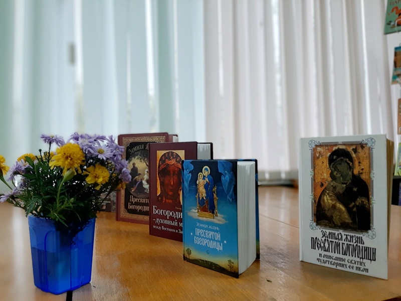 Библиотекарь Любашевская Е.Н. предложила вниманию присутствующих книги библиотечного фонда центра о празднике Покрова Пресвятой Богородицы.