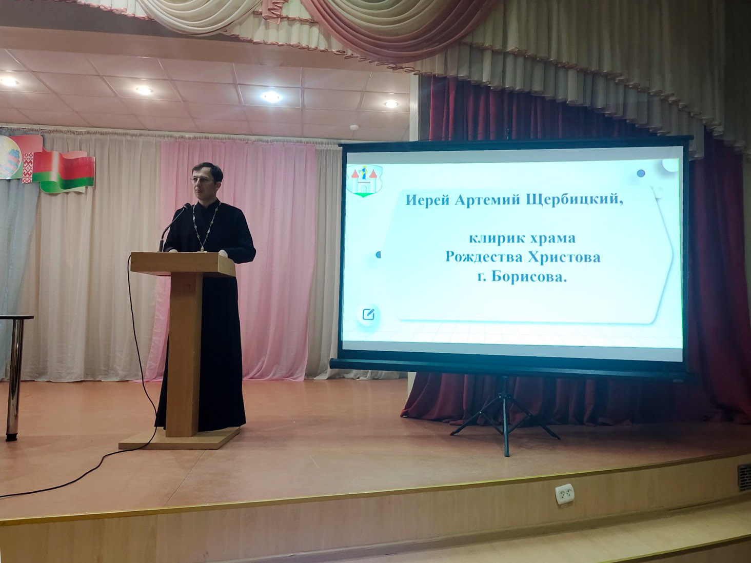 13 декабря клирик храма Рождества Христова г. Борисова, иерей Артемий Щербицкий, принял участие в районном родительском собрании. Темой встречи стала роль семьи в воспитании ребенка. Во время собрания отец Артемий подробно рассказывал о том, как строится христианская семья, о важности любви и взаимопонимания между супругами и детьми. Он подчеркнул, что в основе правильных семейных отношений лежит христианская нравственность, уважение друг к другу и милосердие. Священник поделился практическими рекомендациями по укреплению семейных уз, развитию добрых привычек и духовных ценностей, которые помогают создавать гармоничную атмосферу в семье.