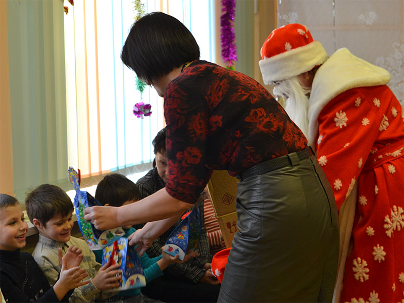 Дед Мороз и Снегурочка вместе с детьми водили хороводы, звучали песни в исполнении ребят и работников учреждения, читали стихи. Каждому воспитаннику центра вручили подарки, что вызвало особую радость детей.