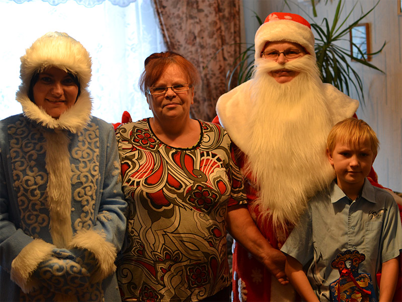 К сожалению, не все могли присутствовать на утренники и получить от Деда Мороза и Снегурочки подарки. Поэтому директором центра А.Н. Сакович и руководителем социальной службы Борисовского благочиния Т.С. Петрович было организовано посещение больных детей на дому.
