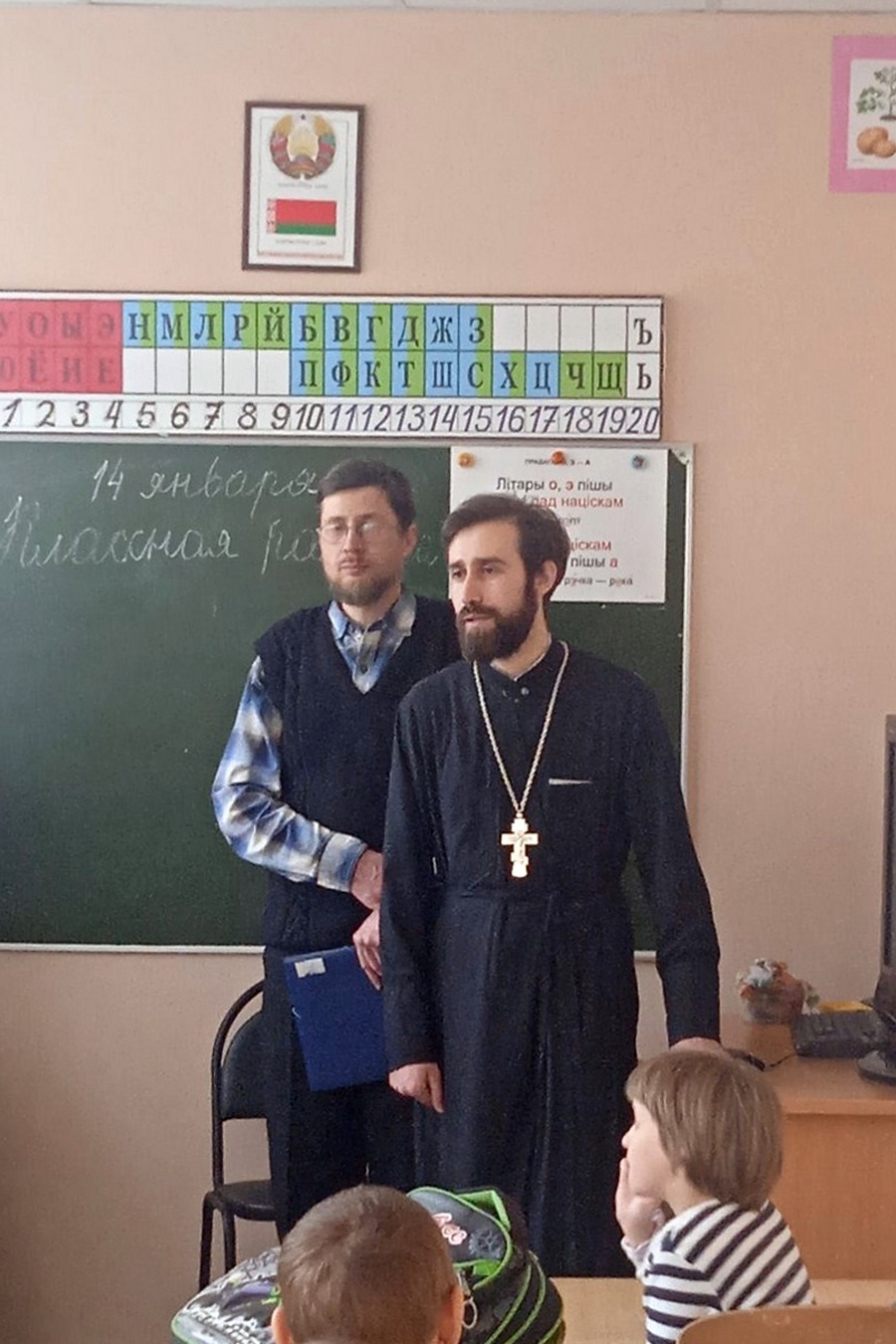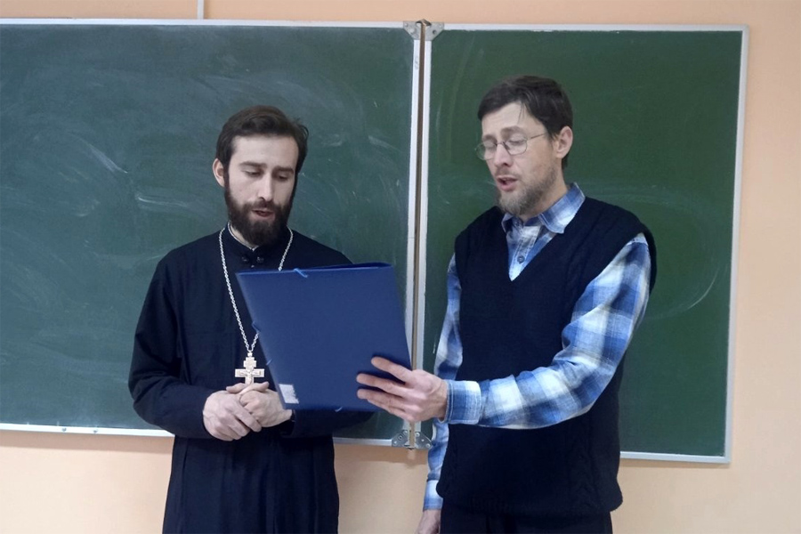 Священник Виктор поздравил сотрудников учреждения и учеников 2-9 классов с Рождеством Христовым, а также священнослужители исполнили колядки, в которых прославили Родившегося Богомладенца Христа.