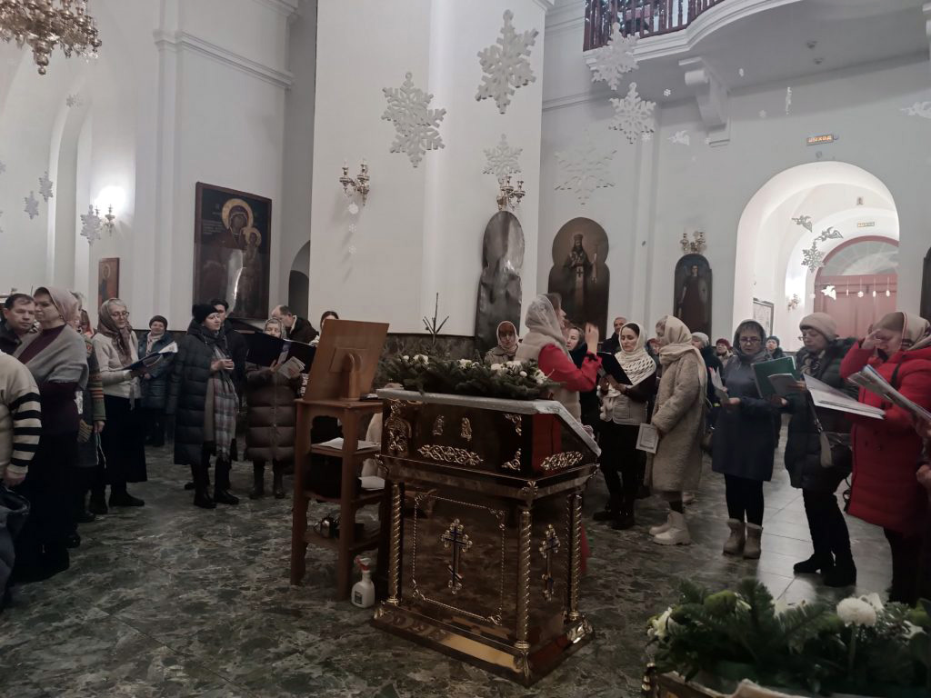 Ранним утром 14 января в праздник Обрезания Господня и день памяти святителя Василия, архиепископа Кесарии Каппадокийской, в кафедральном соборе Воскресения Христова г. Борисова была совершена Божественная литургия с общенародным пением.