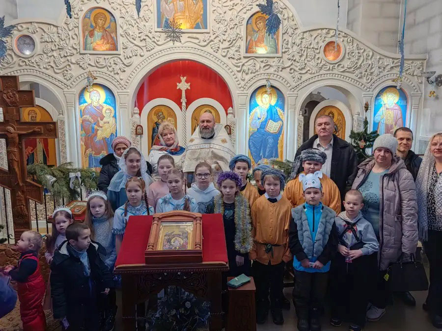 На праздничной Литургии в Троицком храме г. Борисова после индивидуальной исповеди ребята 4-х классов ГУО «Средняя школа N24 г. Борисова» причастились Святых Христовых Тайн. По завершении службы по уже сложившейся традиции ребята поздравили прихожан храма Святой Живоначальной Троицы с праздником Рождества. Учащиеся подготовили сценку о рождении Христа, стихи, песни, игру на музыкальном инструменте домре.