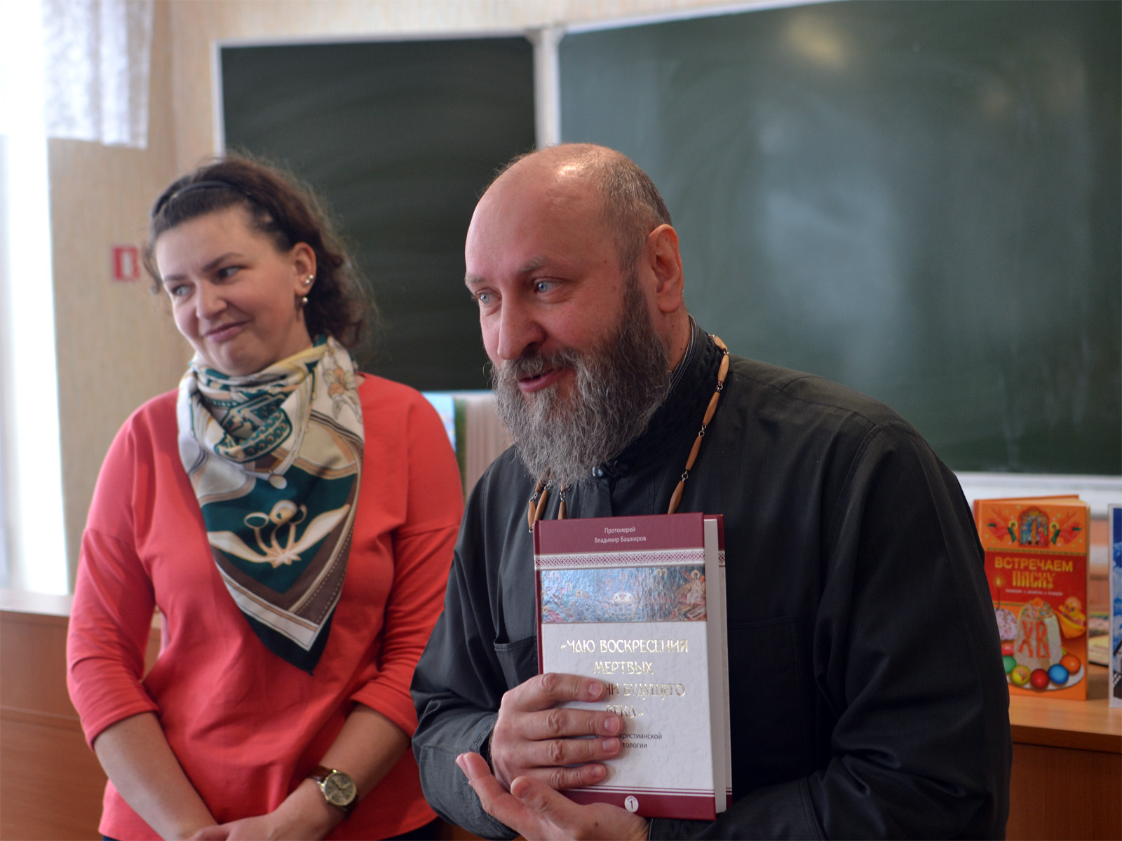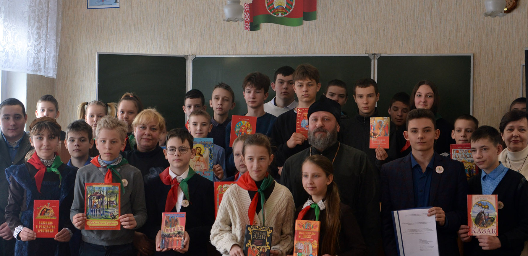 Далее перед учащимися Неманицкой средней школы выступил настоятель прихода храма Святой Живоначальной Троицы г. Борисова протоиерей Георгий Тюхлов. В доступных для детей словах он рассказал о празднике Пасхи, о Спасителе Нашем Иисусе Христе, о главной книге христиан Библии, о православных традициях.