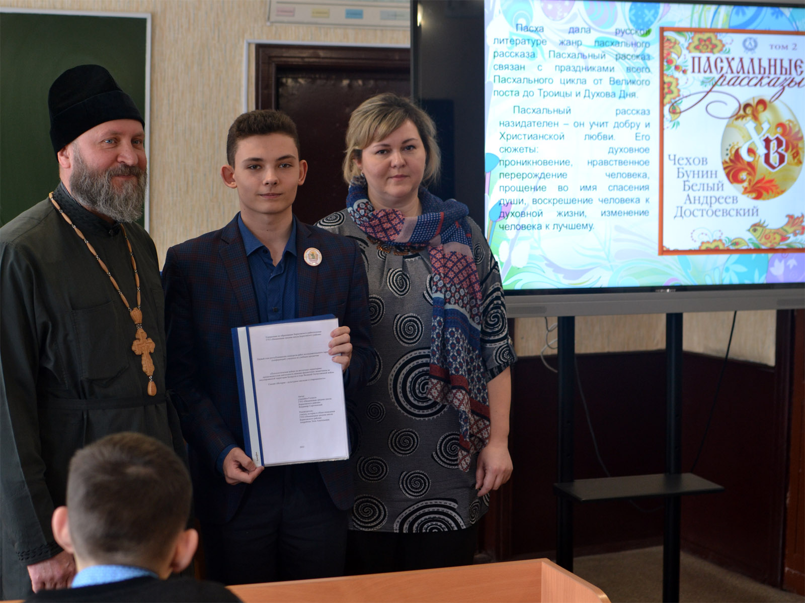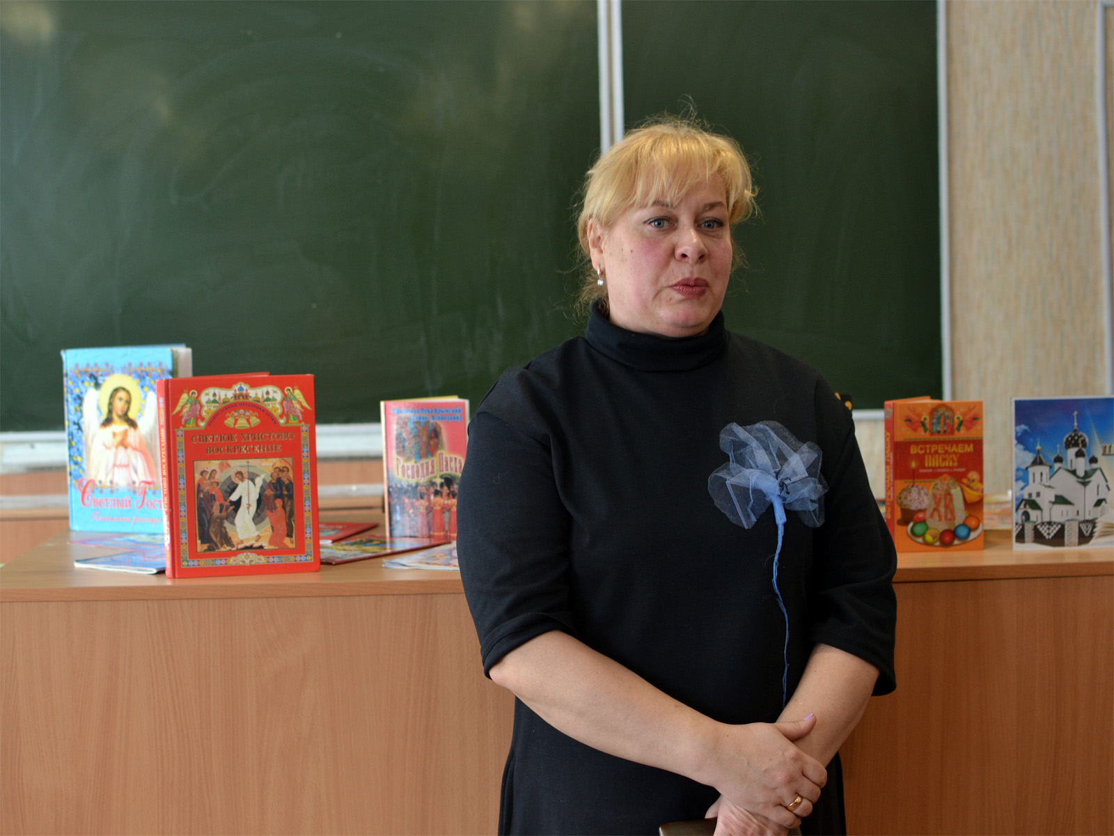 Далее с презентацией «Пасхальные рассказы» выступила библиотекарь духовно-просветительского центра Тарасевич Елена Валерьевна Она говорила об истории письменности, о первых первопечатниках, просветительской деятельности Ивана Федорова, Франциска Скорины, о книгах известных русских писателях, в произведениях которых рассказывается о Пасхе, о духовности славянских народов.