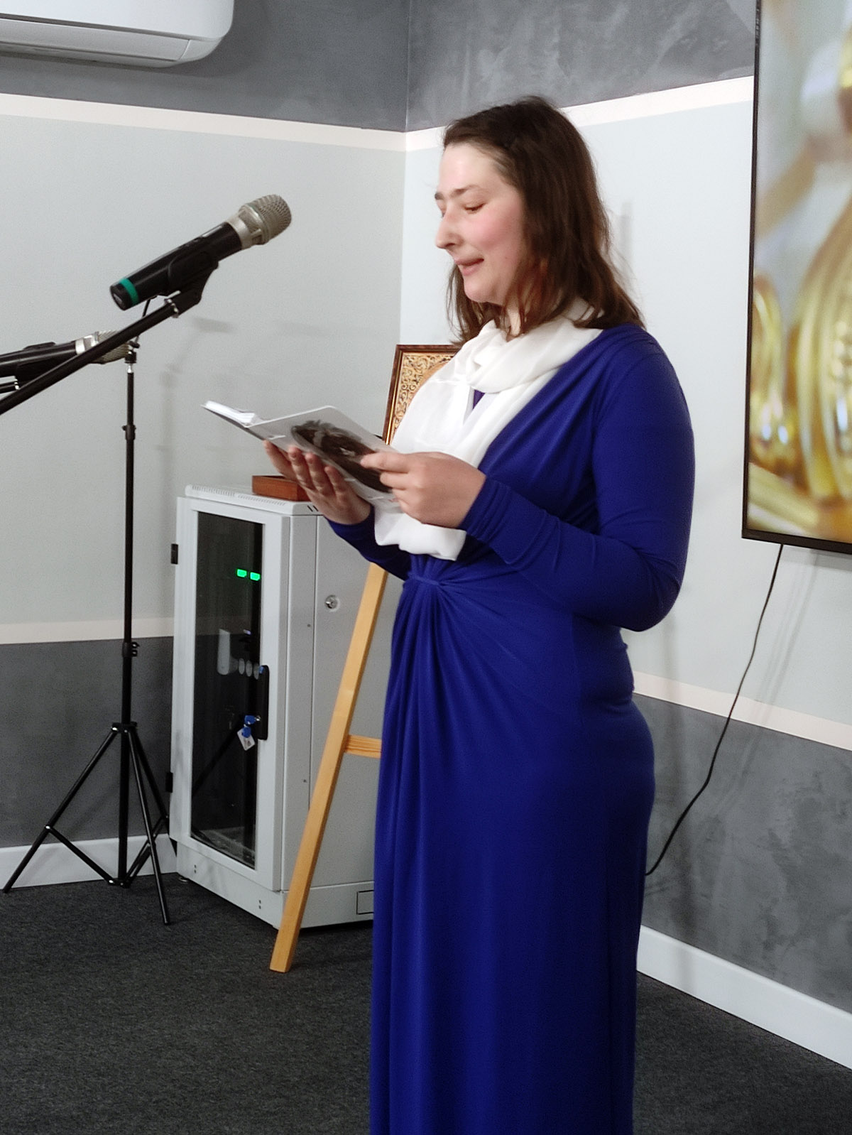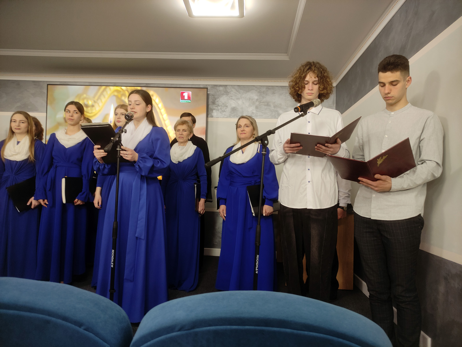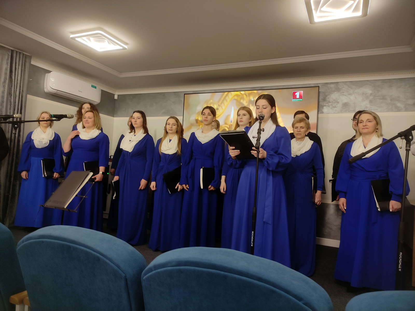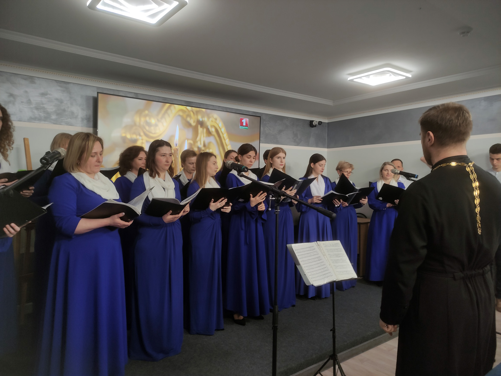 Музыкальное сопровождение вечера было доверено народному камерному хору «Преображение» под руководством иерея Сергия Прокопчика. Их проникновенные песнопения наполнили зал атмосферой духовного возвышения, создавая неповторимое ощущение единения и молитвы.