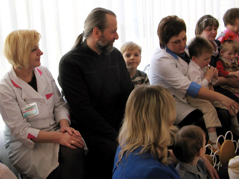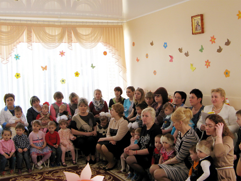 13 апреля в борисовский дом ребенка с радостной пасхальной вестью пришли клирик кафедрального собора Воскресения Христова протоиерей Димитрий Дорошенко и участники детского хора воскресной школы под управлением Марины Вадимовны Головко. Трогательно и торжественно звучали пасхальные песни на праздничном утреннике для малышей, оставшихся без попечения родителей. Улыбки расцвели на лицах всех участников и гостей сказочного представления. Пасха — торжество для всех. Пасха — праздник радости, дарующий живую веру в то, что Истина и Милость путей Господних ведет нас в радость Вечной Пасхи. Воистину Воскресе Христос!