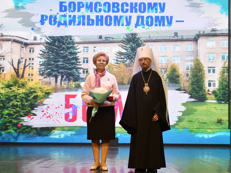 Владыка Вениамин первым поздравил Борисовский родильный дом с юбилеем. Наград Борисовской епархии удостоены ряд работников учреждения здравоохранения. Так, медалью «Марьиногорская икона Пресвятой Богородицы» I степени награждена психолог УЗ «Борисовский родильный дом» Екатерина Русанова, медалью «Марьиногорская икона Пресвятой Богородицы» II степени награждены заведующая женской консультацией № 1 Юлия Пищенко, духовник комиссии по материнству и семье Борисовской епархии протоиерей Димитрий Дорошенко, бывший главврач роддома Александр Шипуло. Архиерейской грамотой награждена главный врач Борисовского роддома Ольга Канашевская. Слова благодарности от имени Борисовского райисполкома в адрес работников роддома высказала Анастасия Копикова. Почетными грамотами Министерства здравоохранения Республики Беларусь и Палаты представителей Национального собрания Республики Беларусь на мероприятии был награжден Борисовский родильный дом.