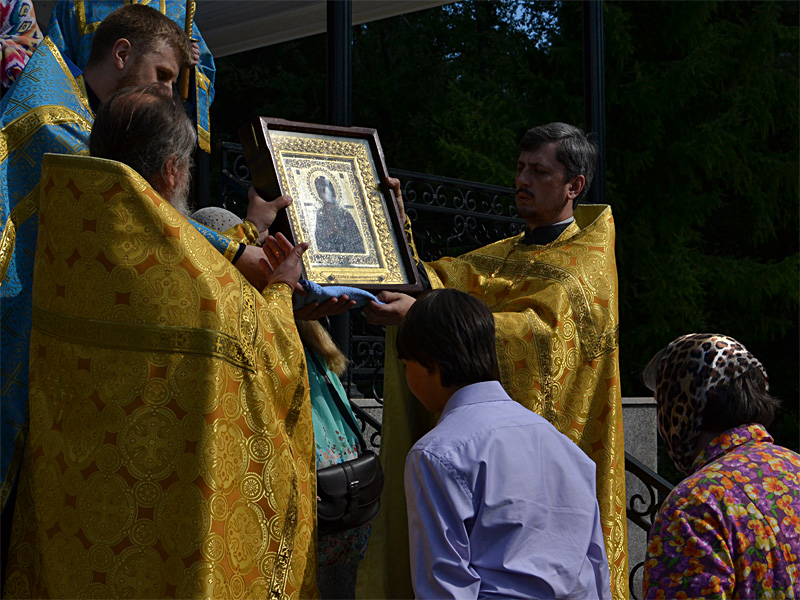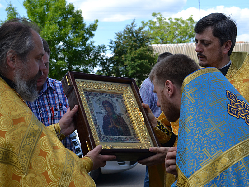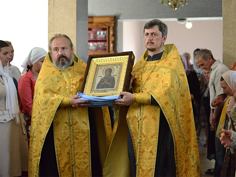 В храме Рождества Христова протодиакон Сергий Керко рассказал молящимся об иконе Божией Матери «Умягчение злых сердец» или «Семистрельная». Затем произнес слово протоиерей Александр Вербило, который передал пожелание милости Божией по молитвам Пречистой Богородицы Преосвященнейшего Вениамина, епископа Борисовского и Марьиногорского. Он отметил, что образ сей будет переходить из храма в храм Борисовского благочиния.