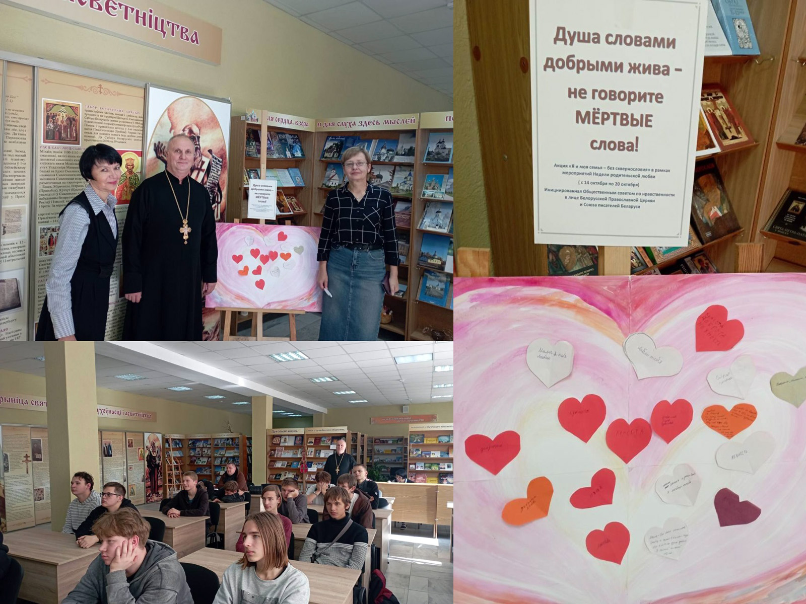 Необычным итогом встречи стало участие парней в добром начинании «Душа словами добрыми жива – не говорите мёртвые слова», организованном в рамках Недели родительской любви и Республиканской акции «Я и моя семья – без сквернословия», которые инициированы Общественным советом по нравственности в лице Белорусской Православной Церкви и Союза писателей Беларуси. На заранее подготовленных бумажных сердечках ребята писали добрые слова своим мамам. И знаете, некоторые из них оказались такими трепетно-поэтичными и искренними, что тронули до глубины души: юношеский максимализм исчез совсем.