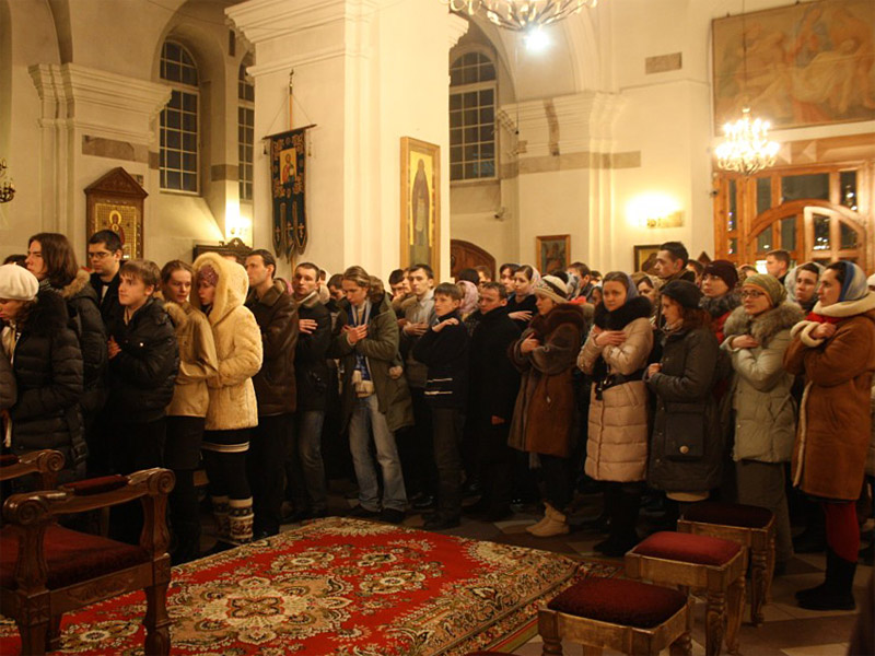 По благословению Высокопреосвященнейшего Филарета, митрополита Минского и Слуцкого, в рамках 10-го юбилейного слёта Объединения Молодёжи Белорусской Православной Церкви в Свято-Петро-Павловском соборе г. Минска была совершена ночная литургия апостола Иакова.