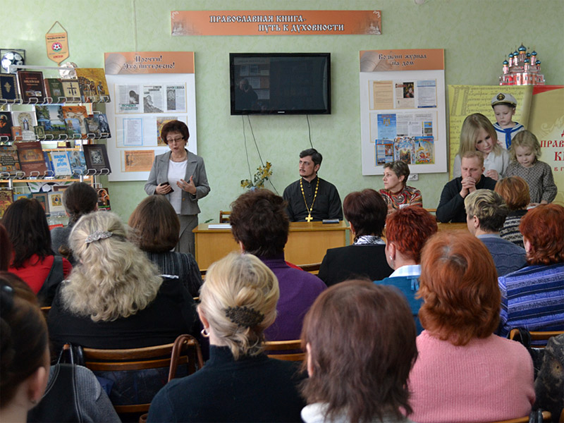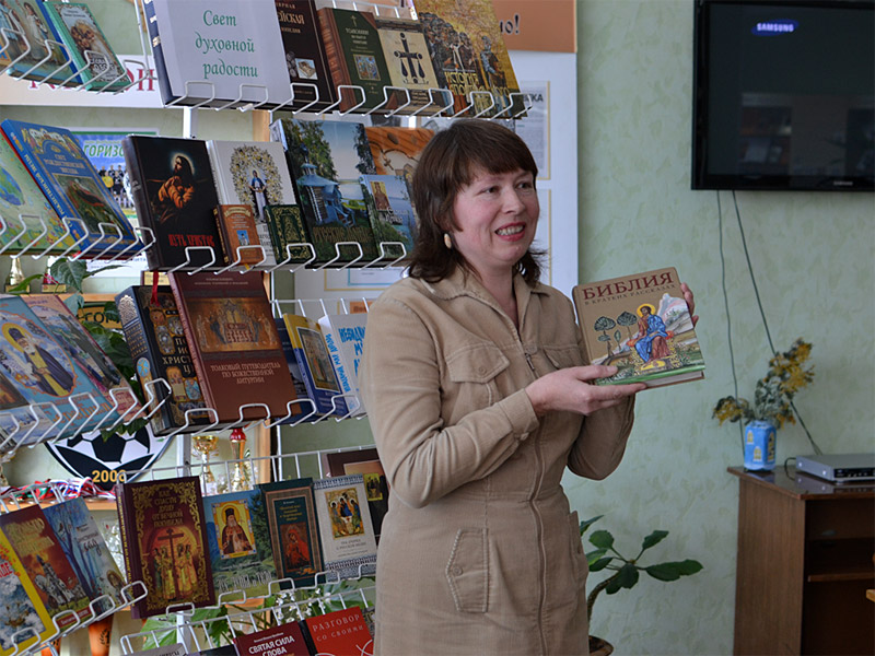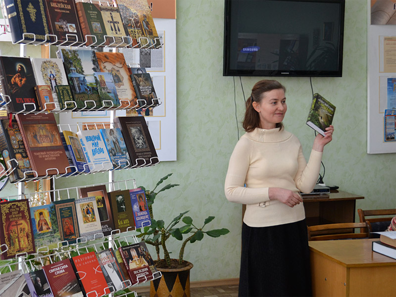 В зале центра были организованы выставки новинок православной литературы, с которыми заведующих сельскими библиотеками ознакомили библиотекари Светлана Васильевна Ярцева и Елена Юрьевна Трусова. И это был не просто показ книг, а обстоятельный рассказ о каждой из них, о том, какую огромную духовную ценность они представляют как для взрослого, так и детского читателя.