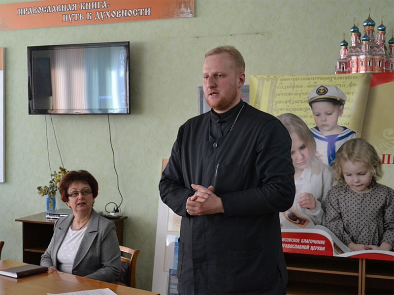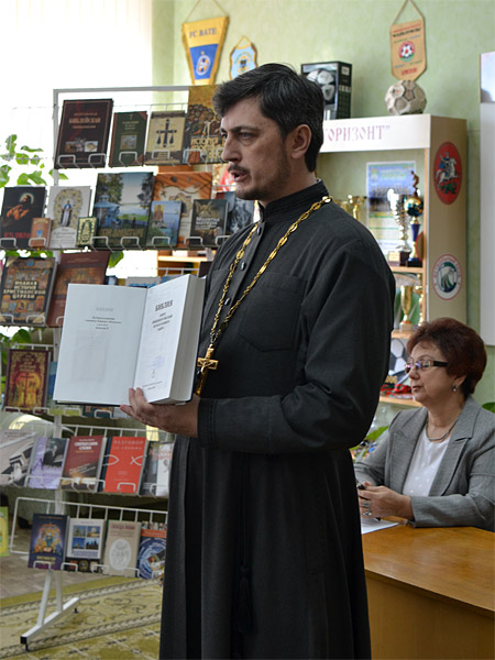 Директор библиотеки Галина Михайловна Слесаренко поздравила всех с праздником, отметила его важность и значимость, после чего предоставила слово отцу Александру.