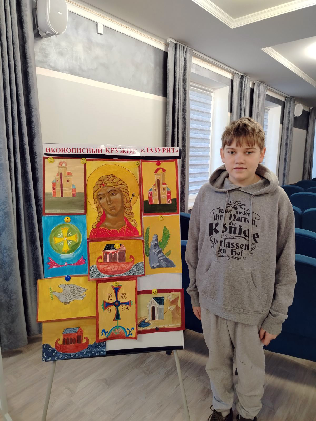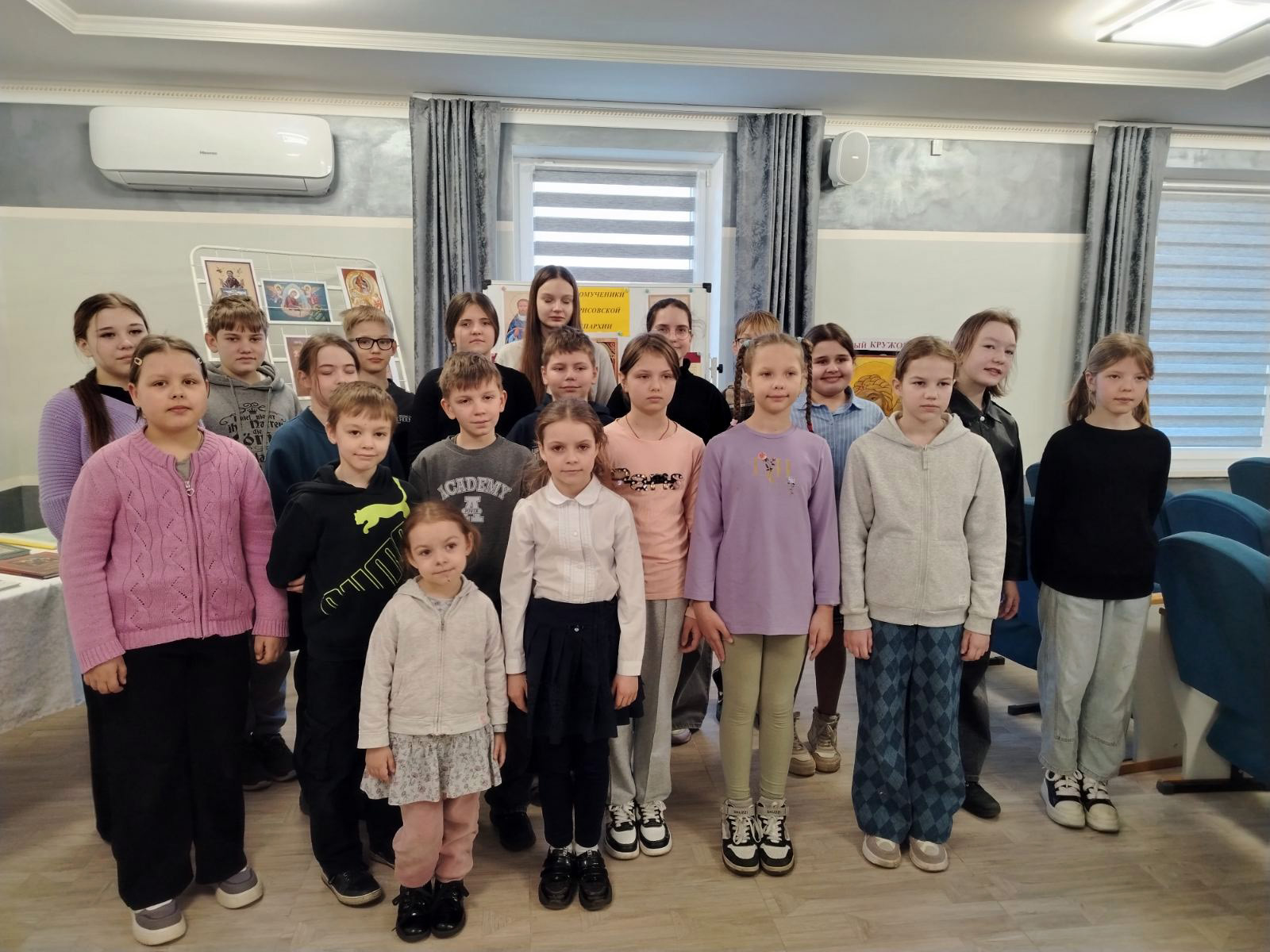 После знакомства с выставкой педагоги Воскресной школы «Истоки» продолжили занятие в игровой форме. Они провели с детьми увлекательную викторину, направленную на проверку и закрепление знаний о заповедях и таинствах православной веры. Вопросы были составлены таким образом, чтобы не только проверить память, но и побудить детей к размышлениям, к поиску ответов в своем сердце. Ребята активно участвовали, с энтузиазмом отвечали на вопросы, делились своими знаниями и даже помогали друг другу. Эта игра стала не просто проверкой, а живым диалогом, в котором каждый мог почувствовать себя частью большой православной семьи.