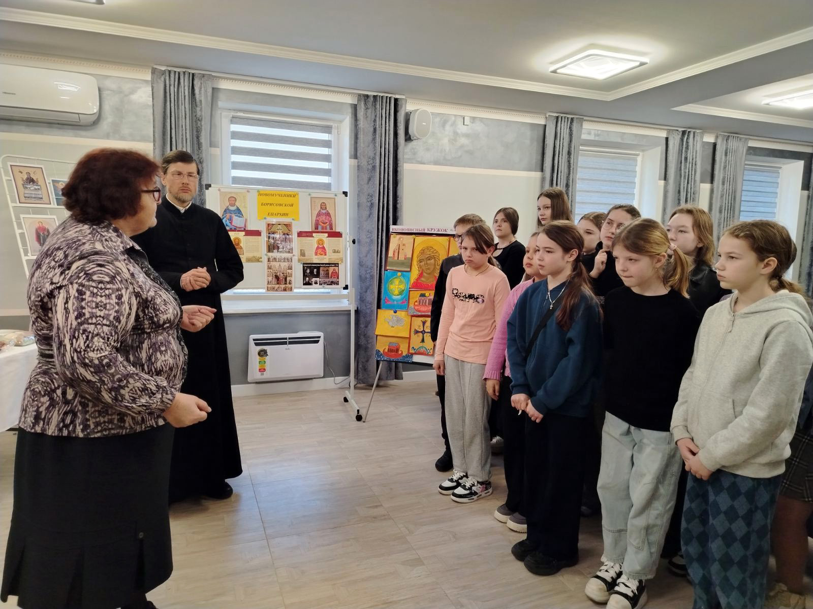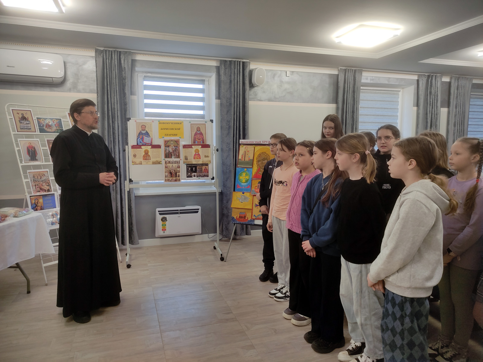 Мероприятие началось с особого момента: протодиакон, отец Михаил Сидоров, радушно встретил ребят и провел для них познавательную экскурсию по выставке православной литературы. С первых минут стало ясно, что это не просто набор книг, а целая сокровищница мудрости и духовного опыта. Отец Михаил с любовью и глубоким знанием дела рассказывал о каждом экспонате, погружая детей в удивительный мир православной книги.