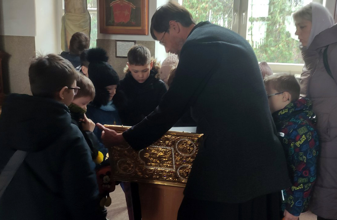 15 ноября, в рамках проекта «День православия», в приходе храма Рождества Христова побывали учащиеся 2 класса ГУО «Средняя школа № 2». Протодиакон Михаил Сидоров провел беседу о православном храме, его устройстве, вынес для показа напрестольное Евангелие и прочитал небольшой отрывок из него.