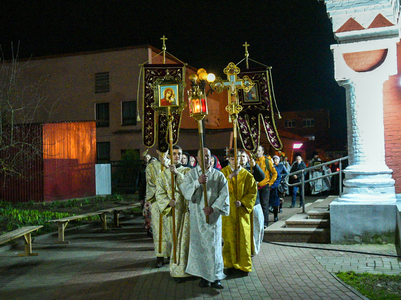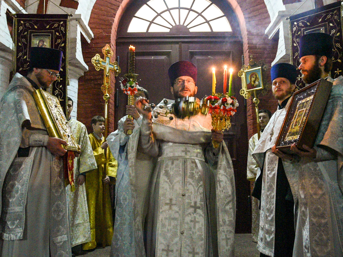 Торжественные Пасхальные богослужения под пение стихиры «Воскресение Твое, Христе Спасе» начались с крестного хода, который был совершен вокруг кафедрального собора.