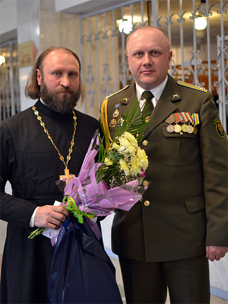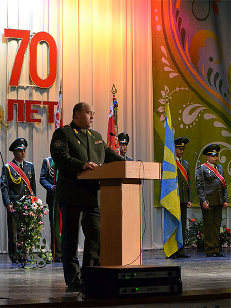 Настоятель прихода храма Святой Живоначальной Троицы протоиерей Георгий Тюхлов принял участие в торжественном собрании, посвященном 70-летию 140-й зенитно-ракетной бригады, которая дислоцируется в г. Борисове.