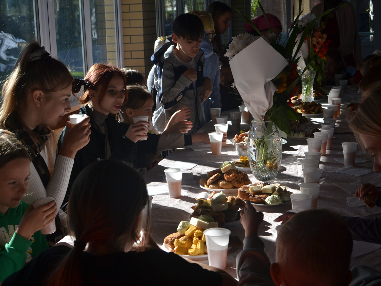 По окончании для участников мероприятия на крытой веранде приходского дома было организовано чаепитие, их угощали печеньем, сладостями